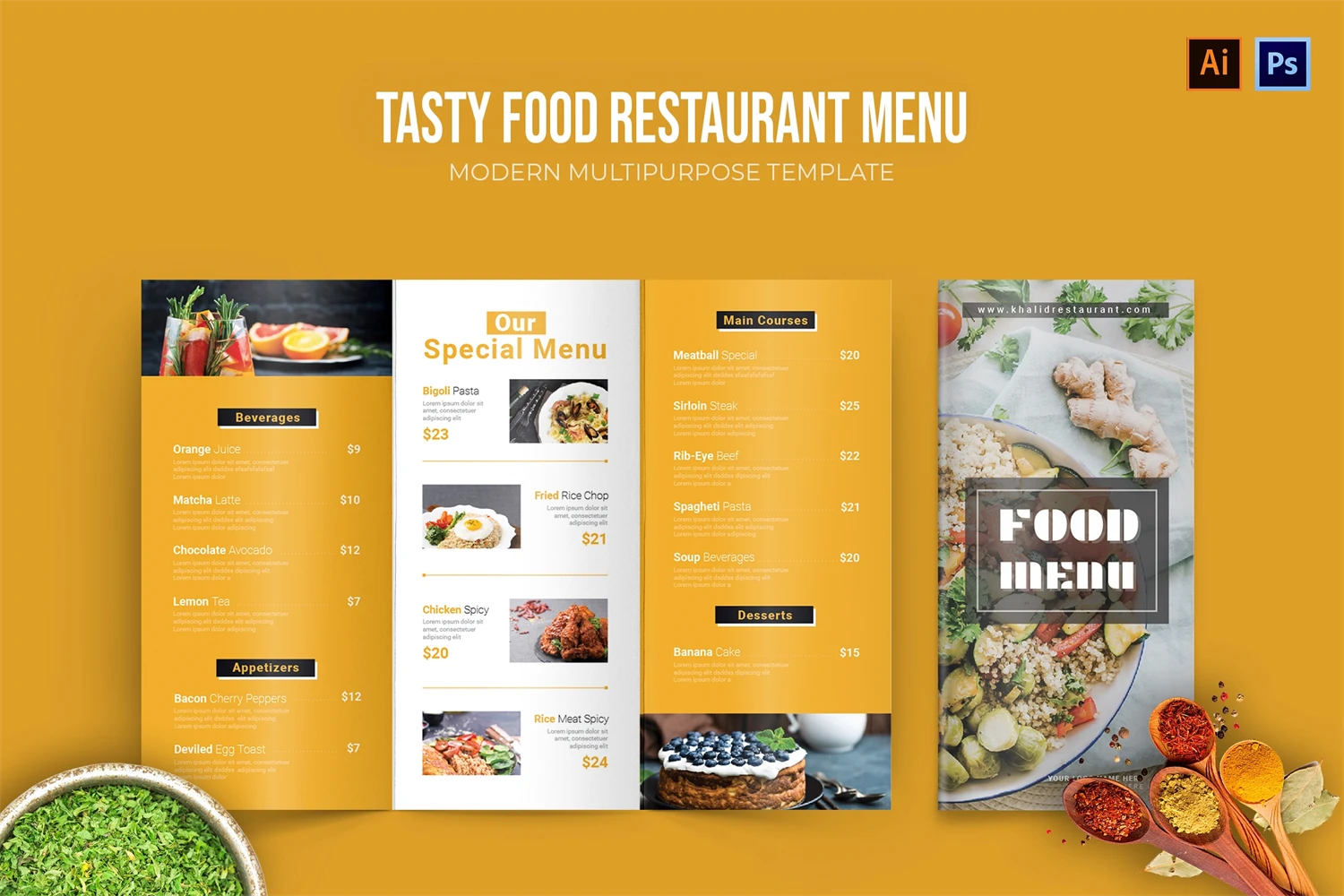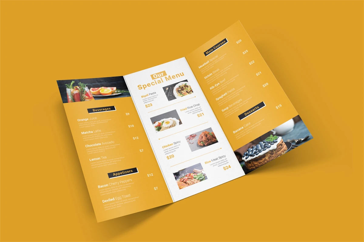 Tasty Food - Restaurant Menu. This template is great for your business and will make your customers interested, elegant, and easily editable according to your needs, this restaurant menu is perfect for, promos, cafes, hotels, resort shops online. etc. I hope you enjoy this restaurant menu