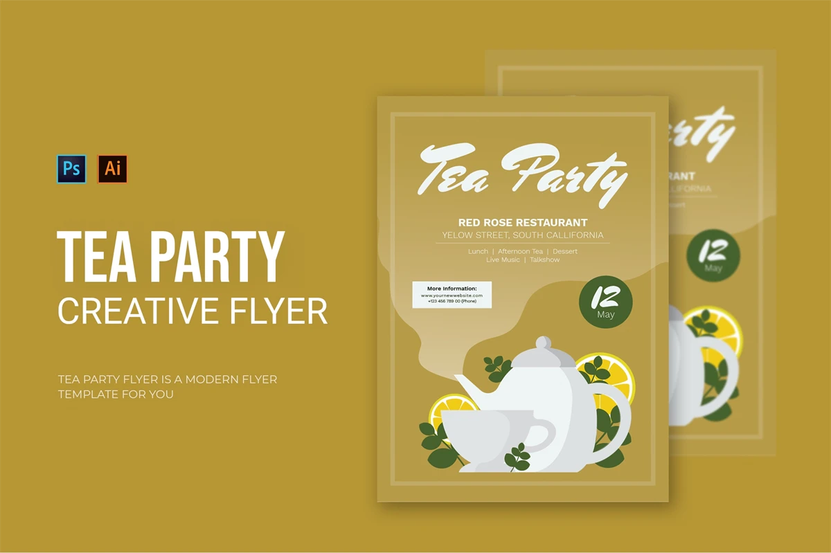 Tea Party - Flyer. This Flyer template is designed for your company's business needs. very clean and elegant, and also easily edited and adjusted to your liking