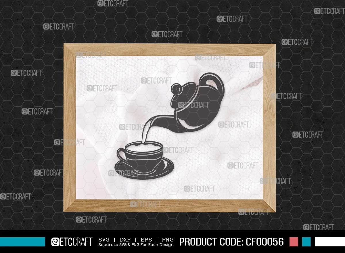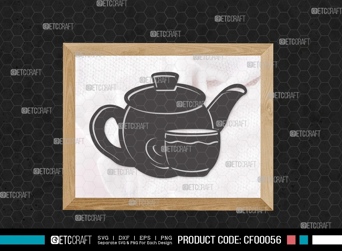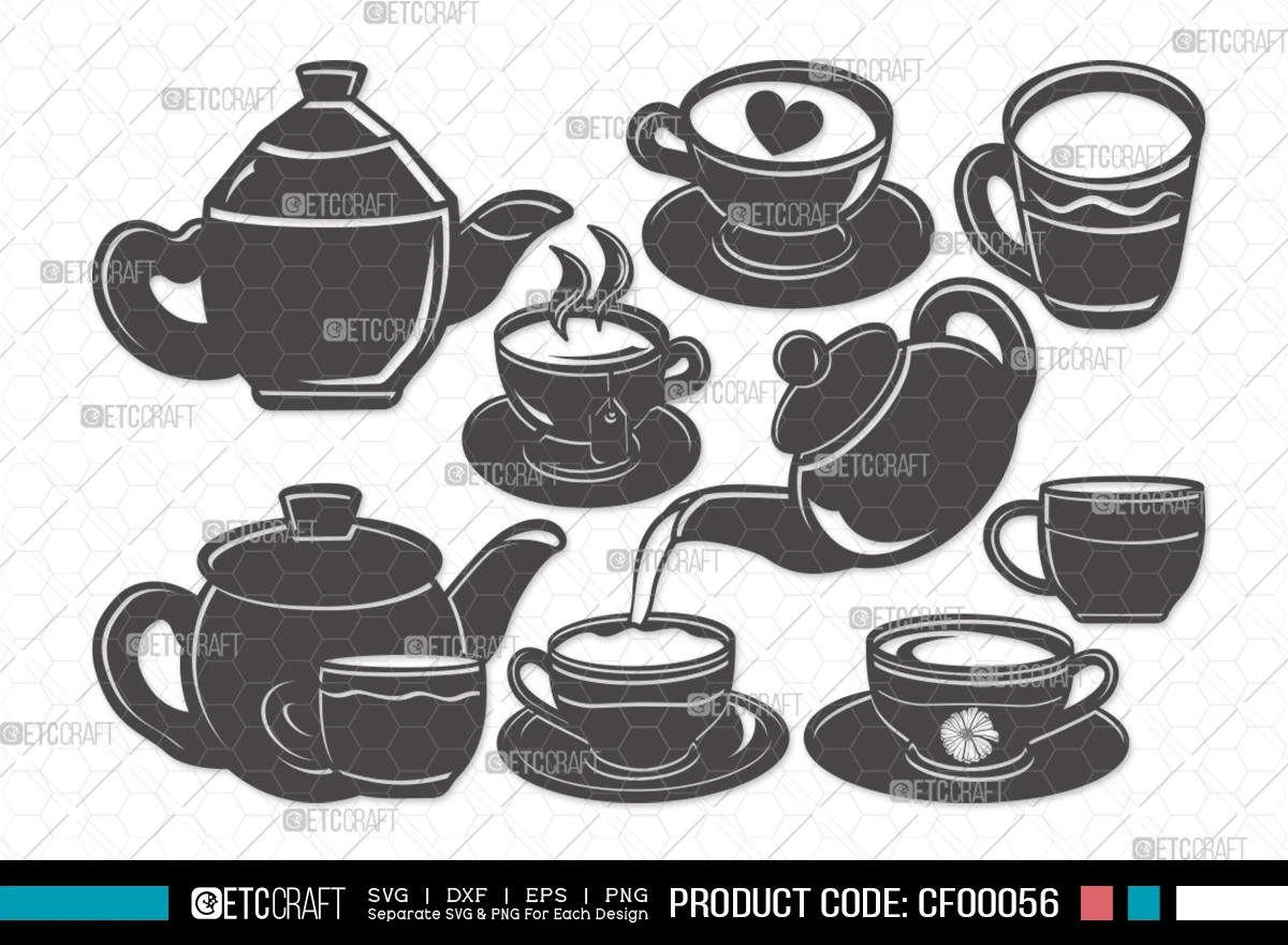 Let the elegance of tea infuse your projects with our "Tea Set Silhouette Cup Kettle & TeaPot" SVG cut file bundle. Let your creativity steep and blossom!
