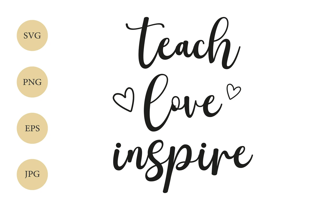 Teach Love Inspire SVG, Motivational Quote SVG, Saying SVG, Design for T-shirts, Cricut Cut File, Digital Download