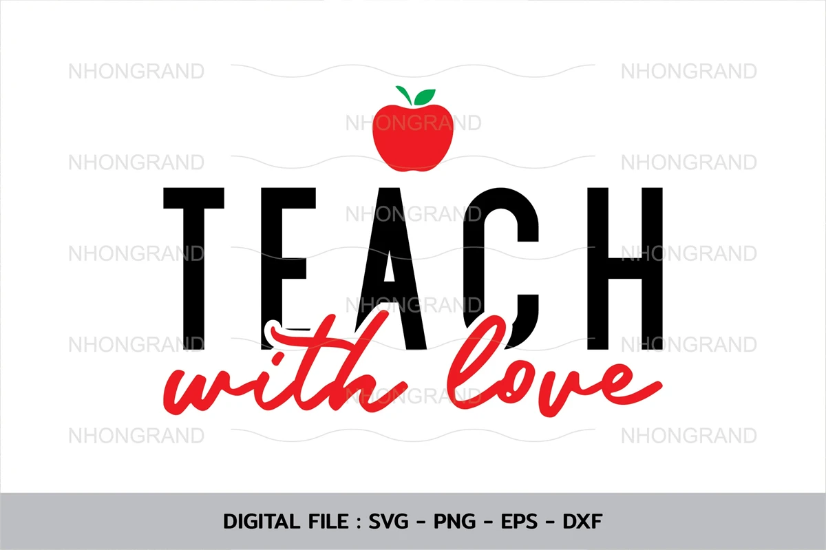 teach with love apple for Teacher Appreciation Day, lover gift, t-shirt, Cricut Files, svg, png, eps, dxf, file