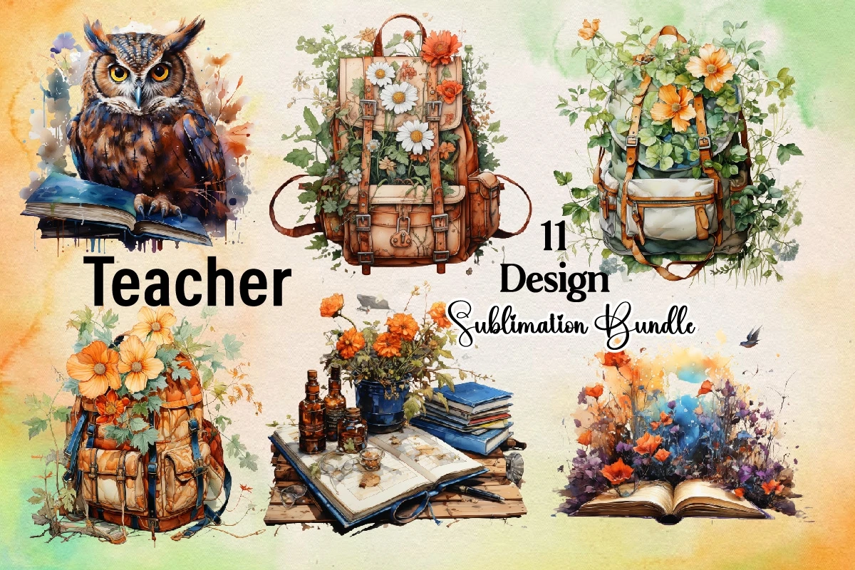 Watercolor Teacher Clipart PNG Bundle
