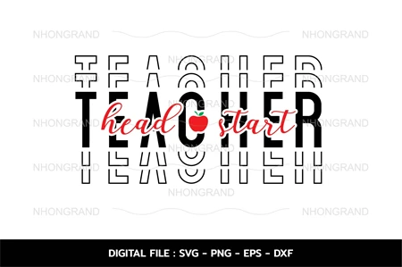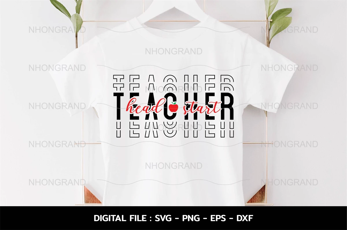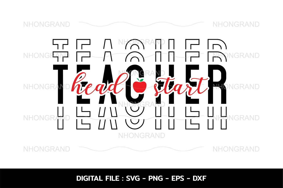 Teacher Head Start Svg, Apple School Cut Files, Back to School Svg, Teacher Svg, Shirt Cricut Files, svg, png, eps, dxf, Download
