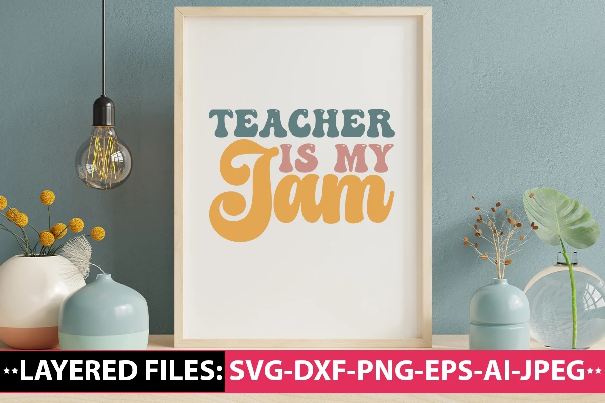 Teacher Is My Jam RETRO SVG Design, Retro t-shirt design