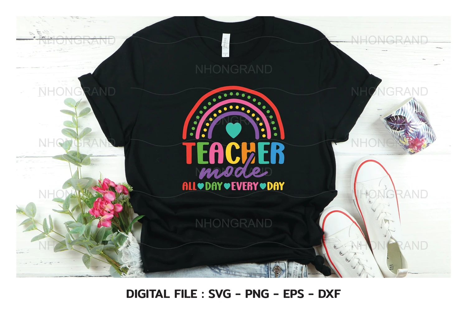 teacher mode all day every day with rianbow cutie for Teacher Appreciation Day, lover gift, t-shirt, Cricut Files, svg, png, eps, dxf, file