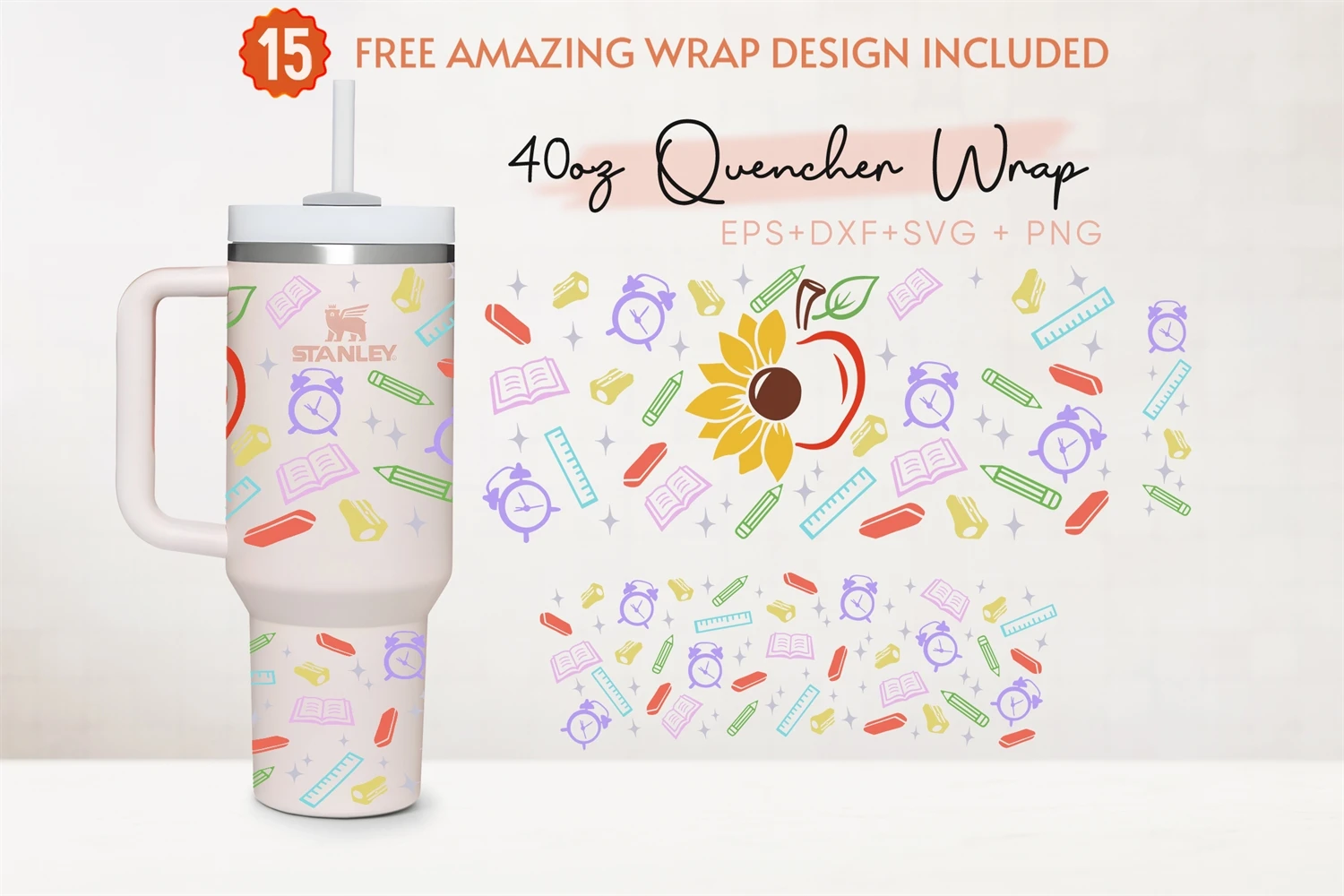 Teacher Sunflower 40oz Quencher Tumbler, Teacher Life, Teach