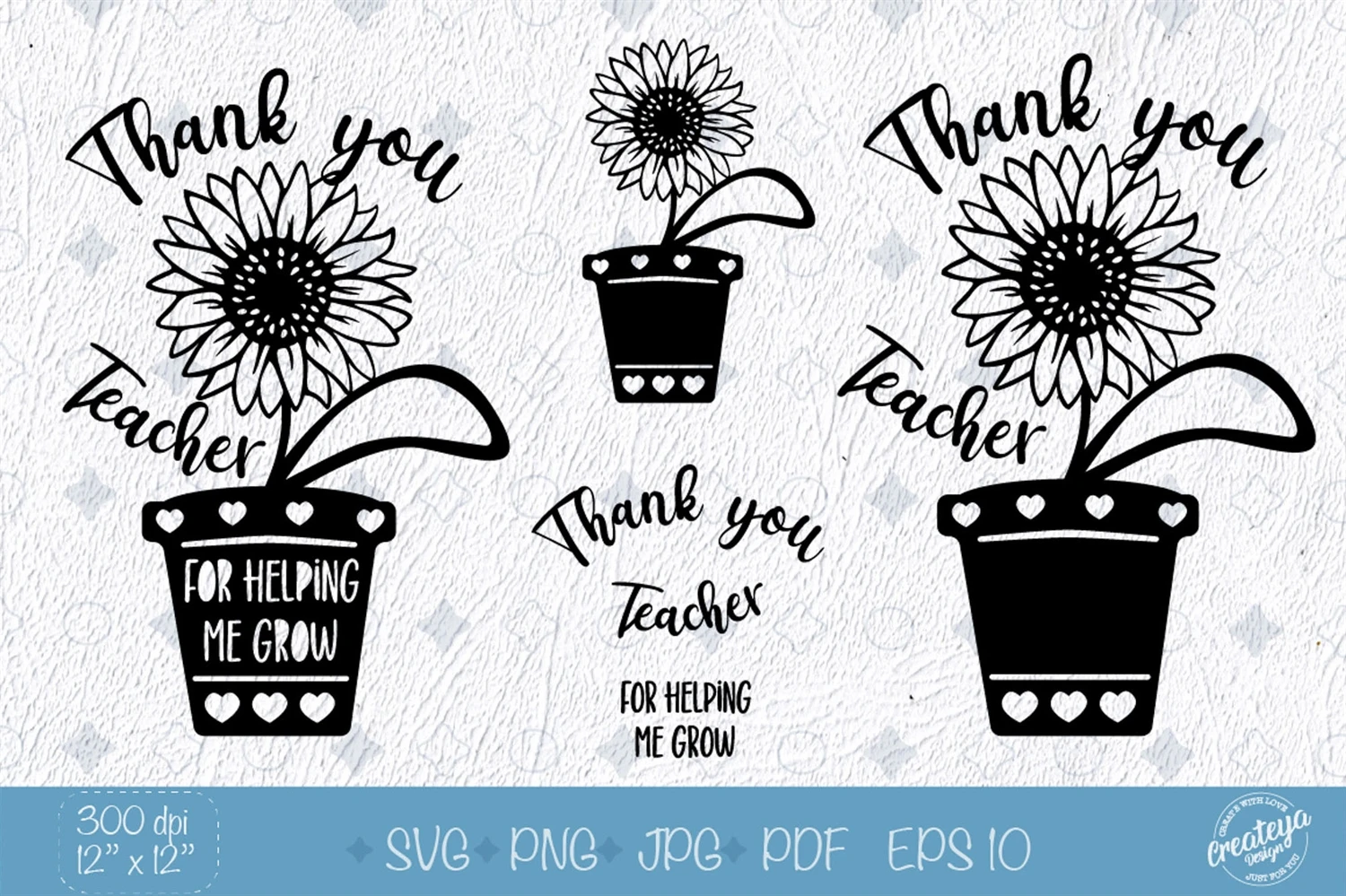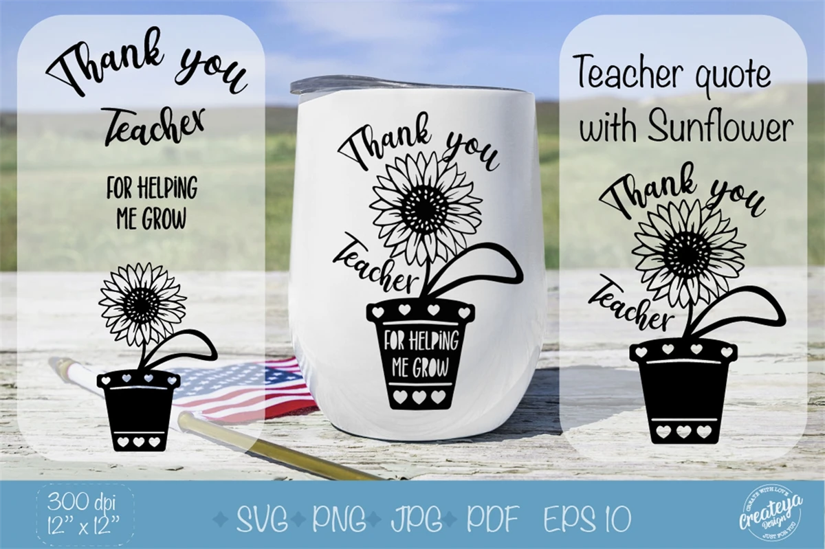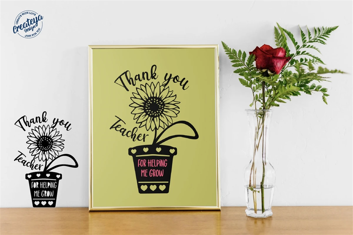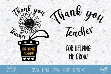 This Teacher svg quote Thank you teacher for helping me grow is great for mugs, t-shirts, bags, cards, invitations and many more products.