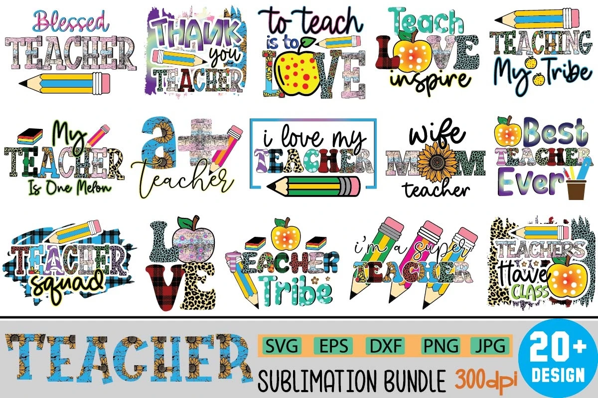 Teacher Typography Craft T-shirt Sublimation Bundle