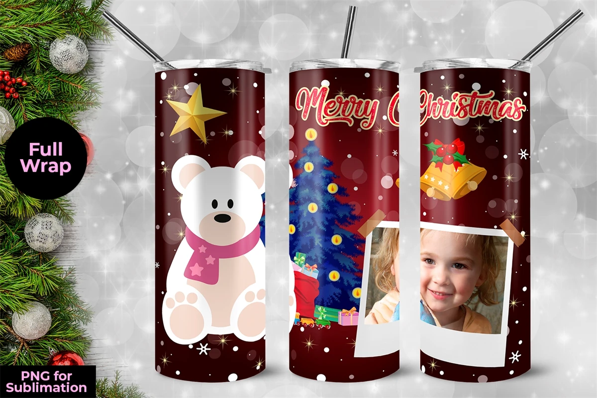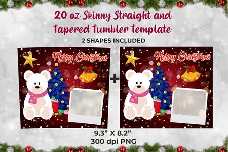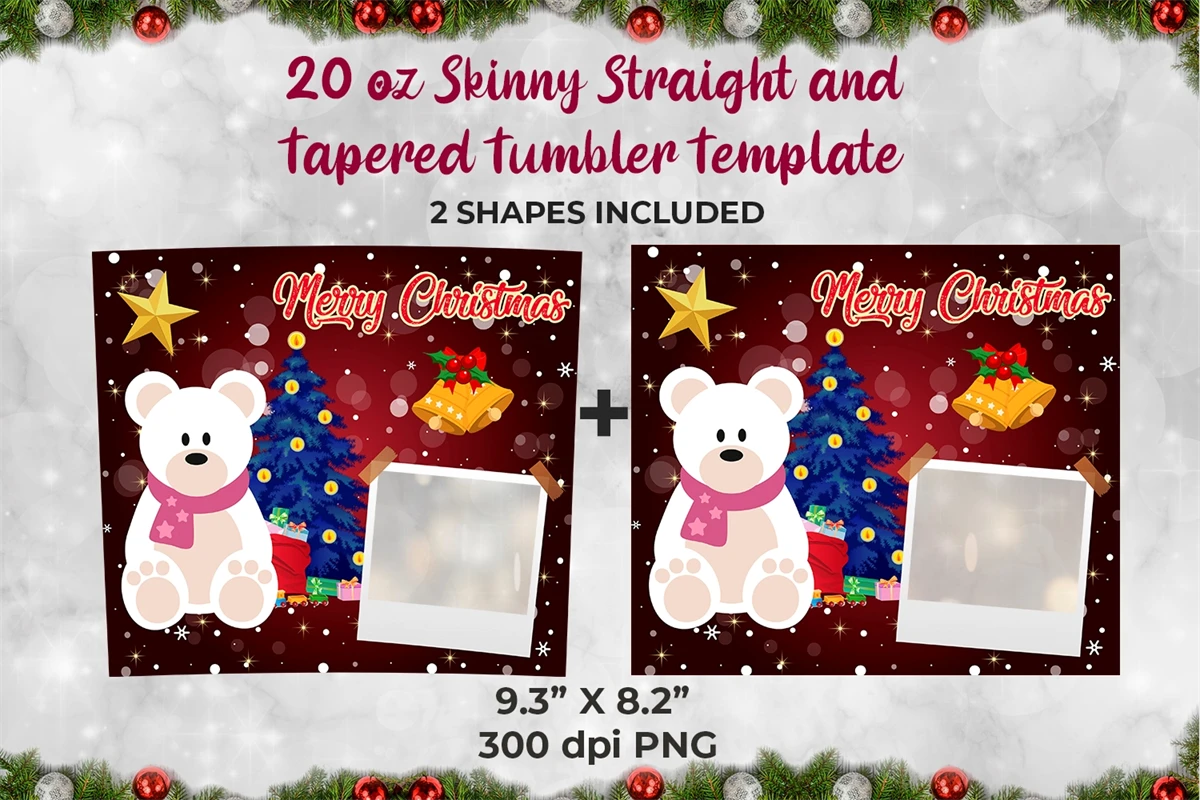 Teddy Bear Merry Christmas Frame Skinny Tumbler Wrap