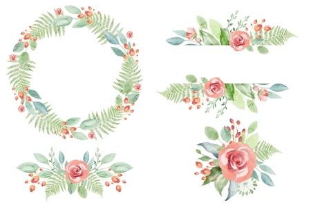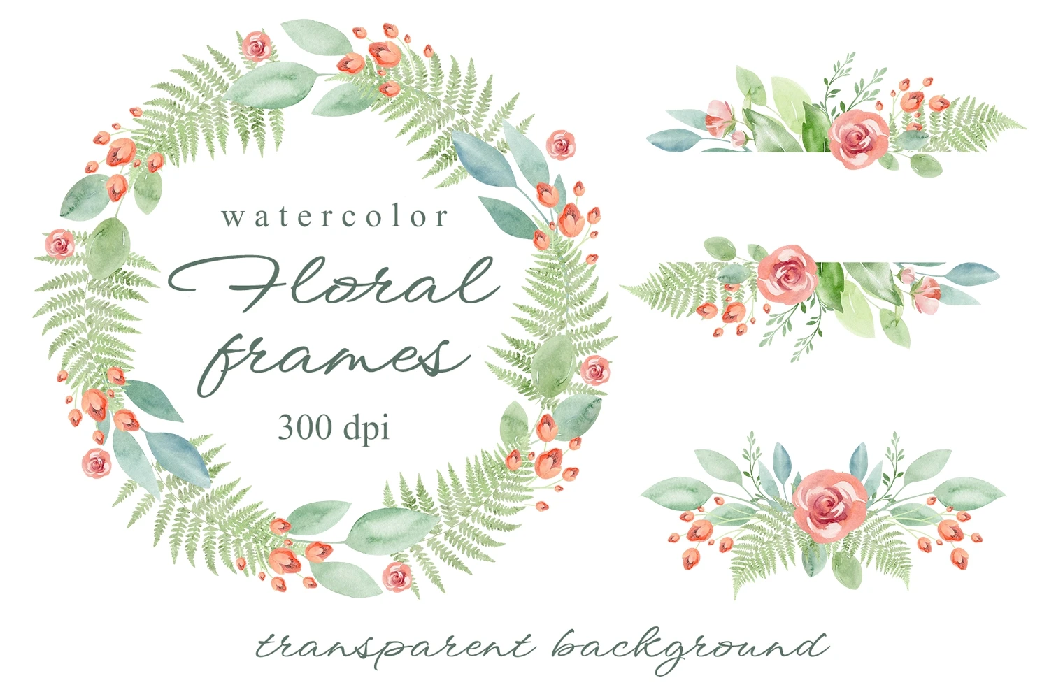Floral set of watercolor frames. Perfect design for crafts, wedding invitations, greeting cards, blogs, posters and more.