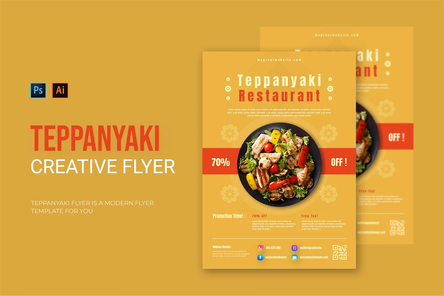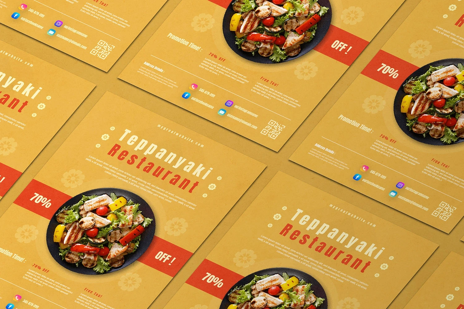Teppanyaki - Flyer. This Flyer template is designed for your company's business needs. very clean and elegant, and also easily edited and adjusted to your liking