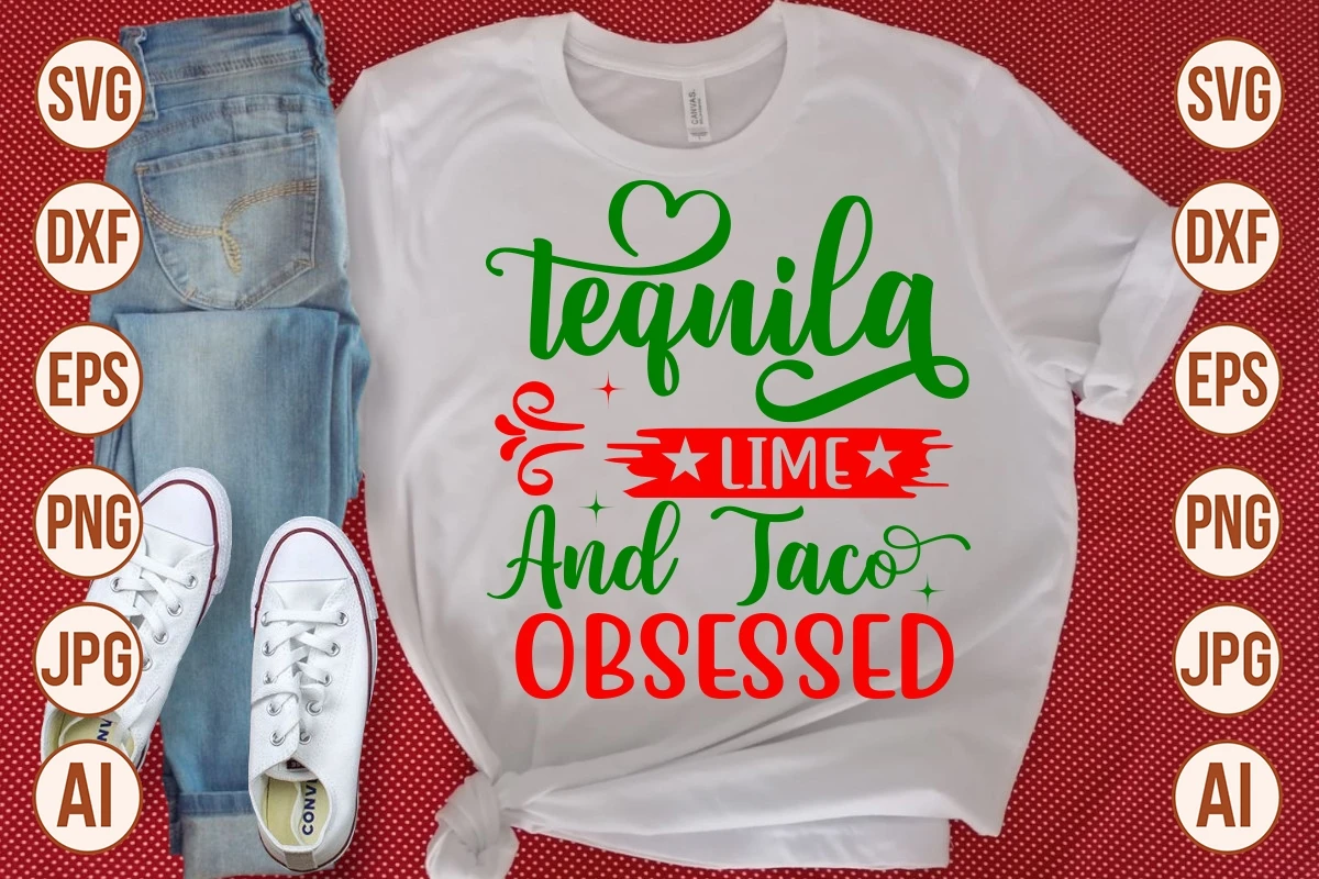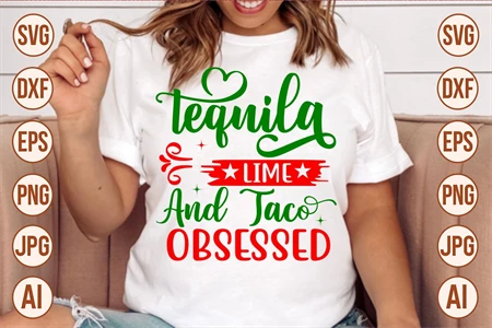 Tequila Lime And Taco Obsessed T-shirt Designs.0