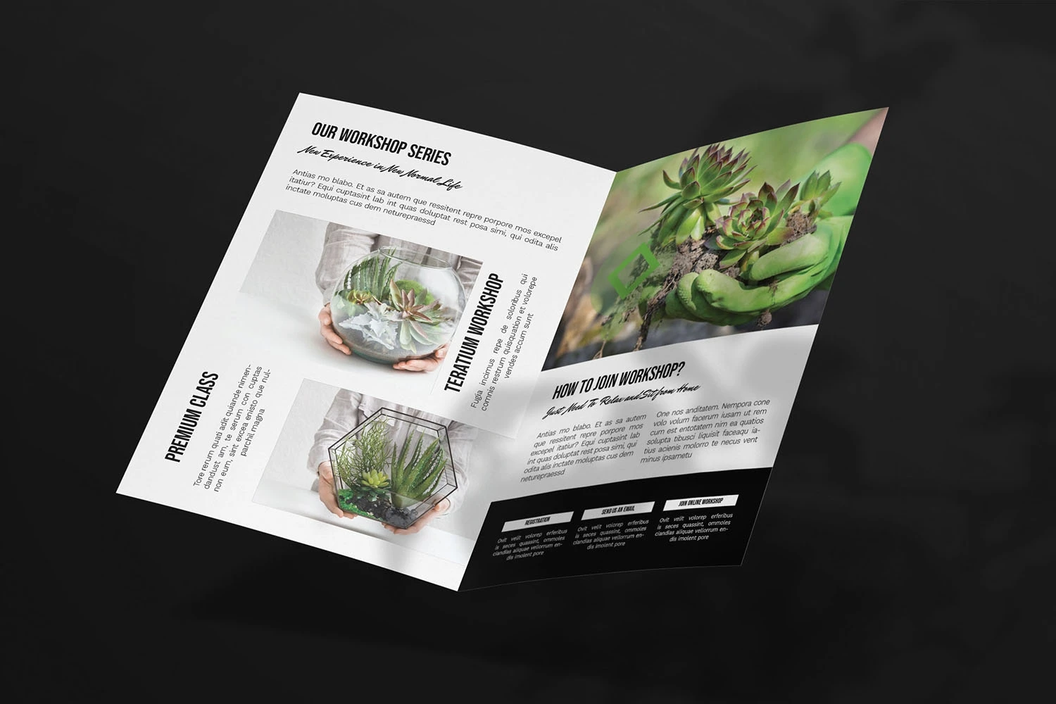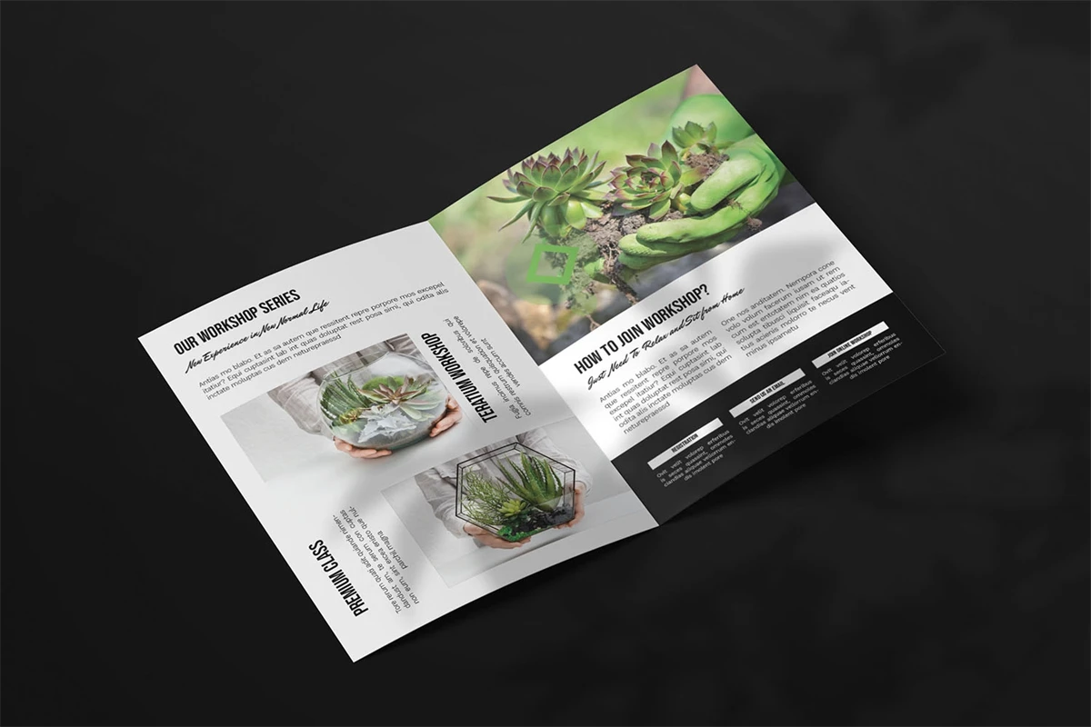 Terarium Workshop - Bifold Brochure We present this Bifold Brochure for you, simple and very elegant, and this Bifold Brochure is suitable for all types of your business, made with adobe inDesign, very easy to customize, Hope you Like it, dont forget to rate, Thanks.