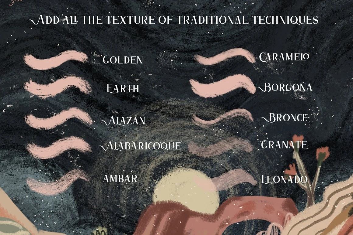 Incluye tambin 2 texturas estilo lienzo para que pintes sobre ellas.