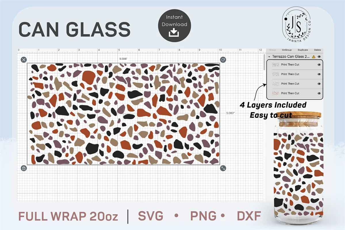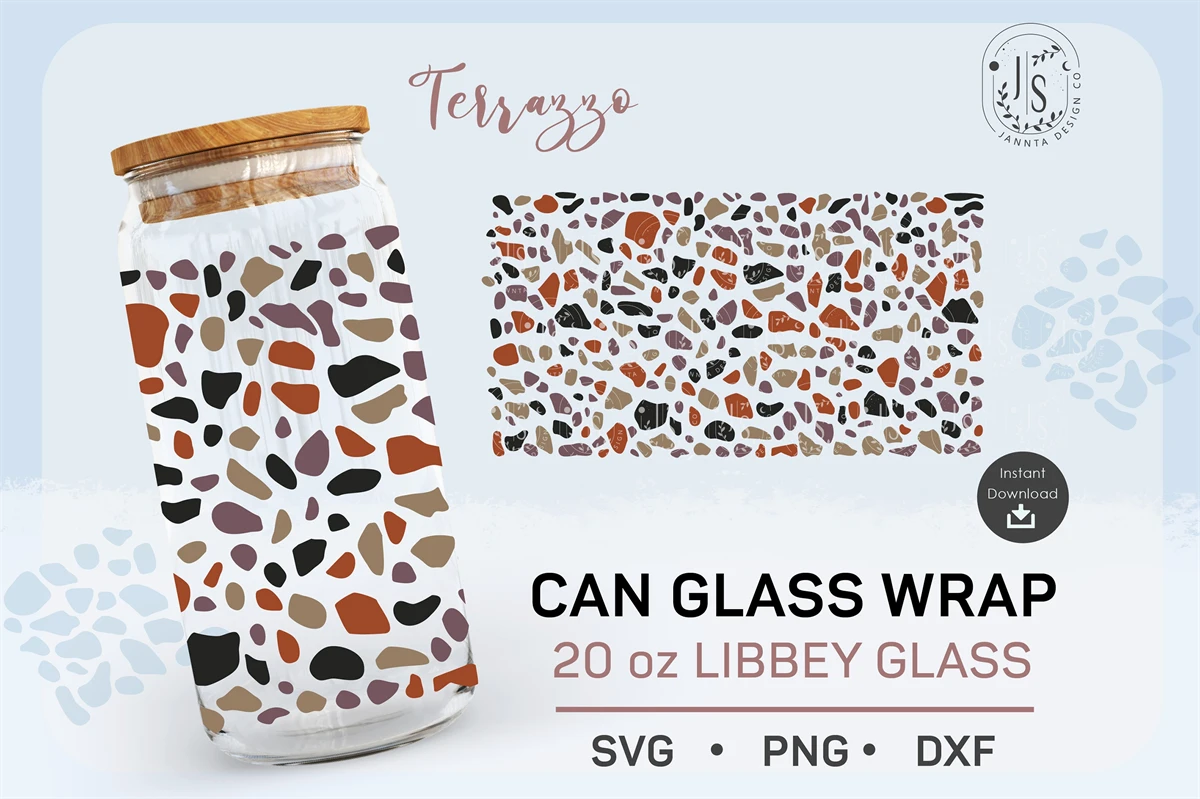 Terrazzo Texture SVG 20oz, Mosaic SVG, Can Glass Wrap SVG, Full Wrap for Can Glass, Seamless Wraps, PNG Digital Download Template