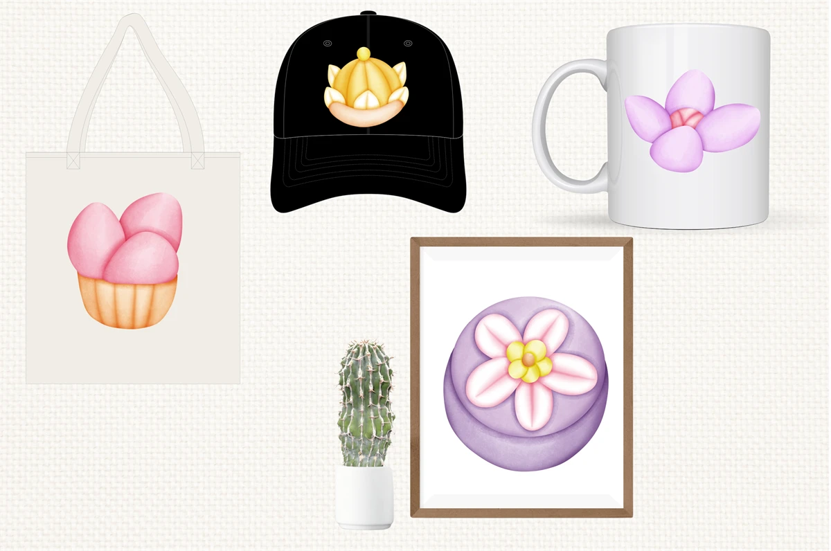 These illustrations are great for invitations, cards, wallpaper, packaging, branding, web sites, social media etc.