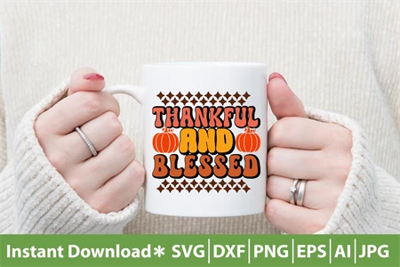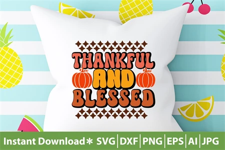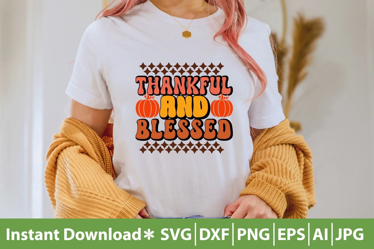 Thankful And Blessed Retro SVG Cut File Design, RetroSVG