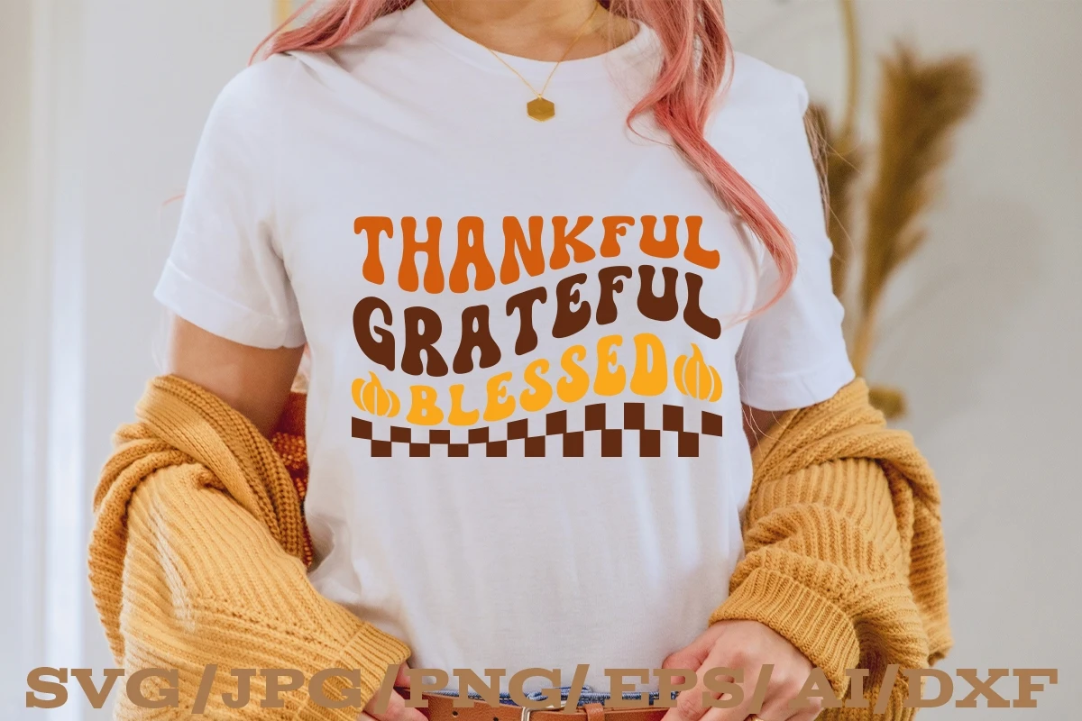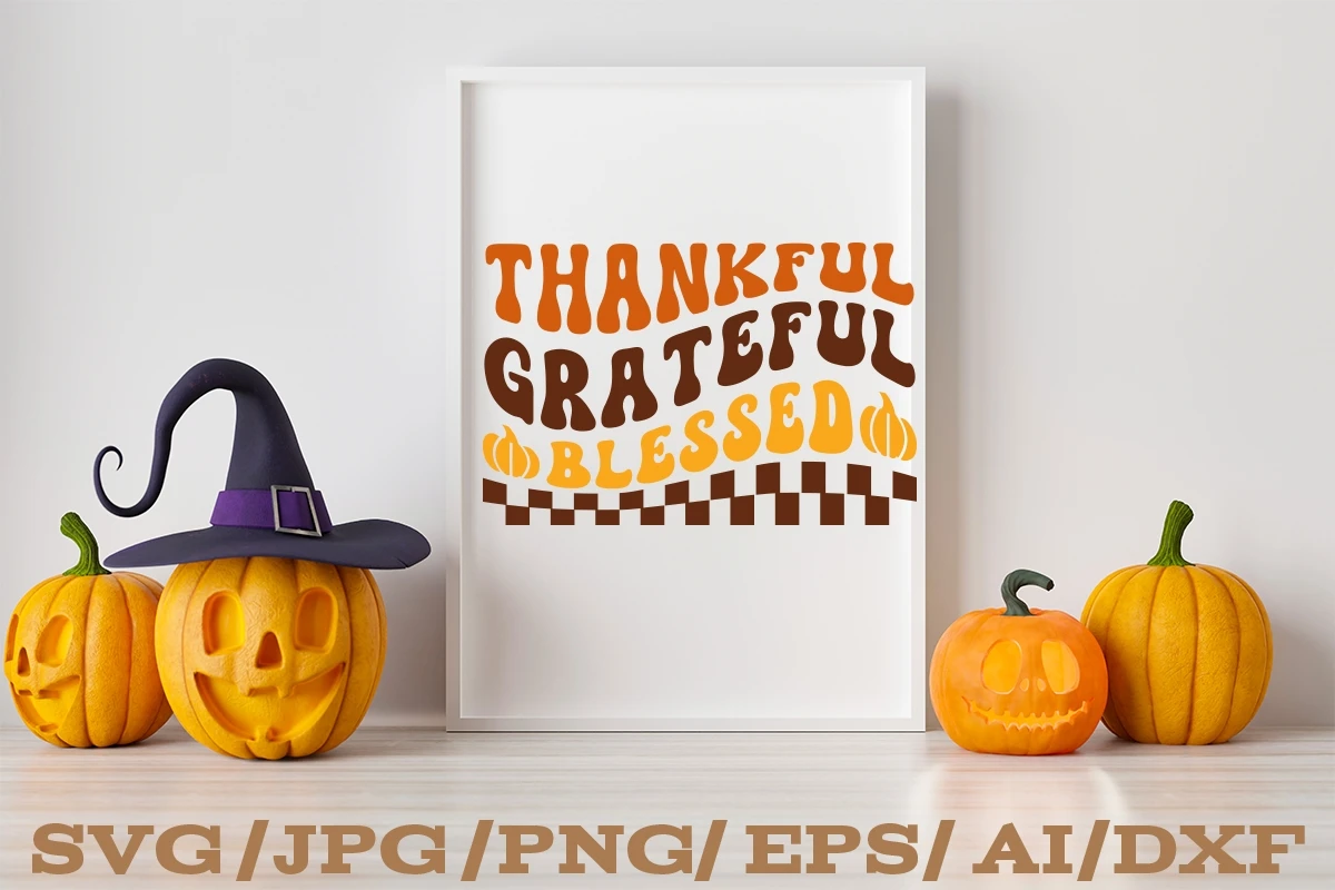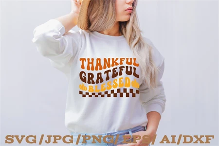 THANKFUL GRATEFUL BLESSED Retro Thanksgiving SVG Design