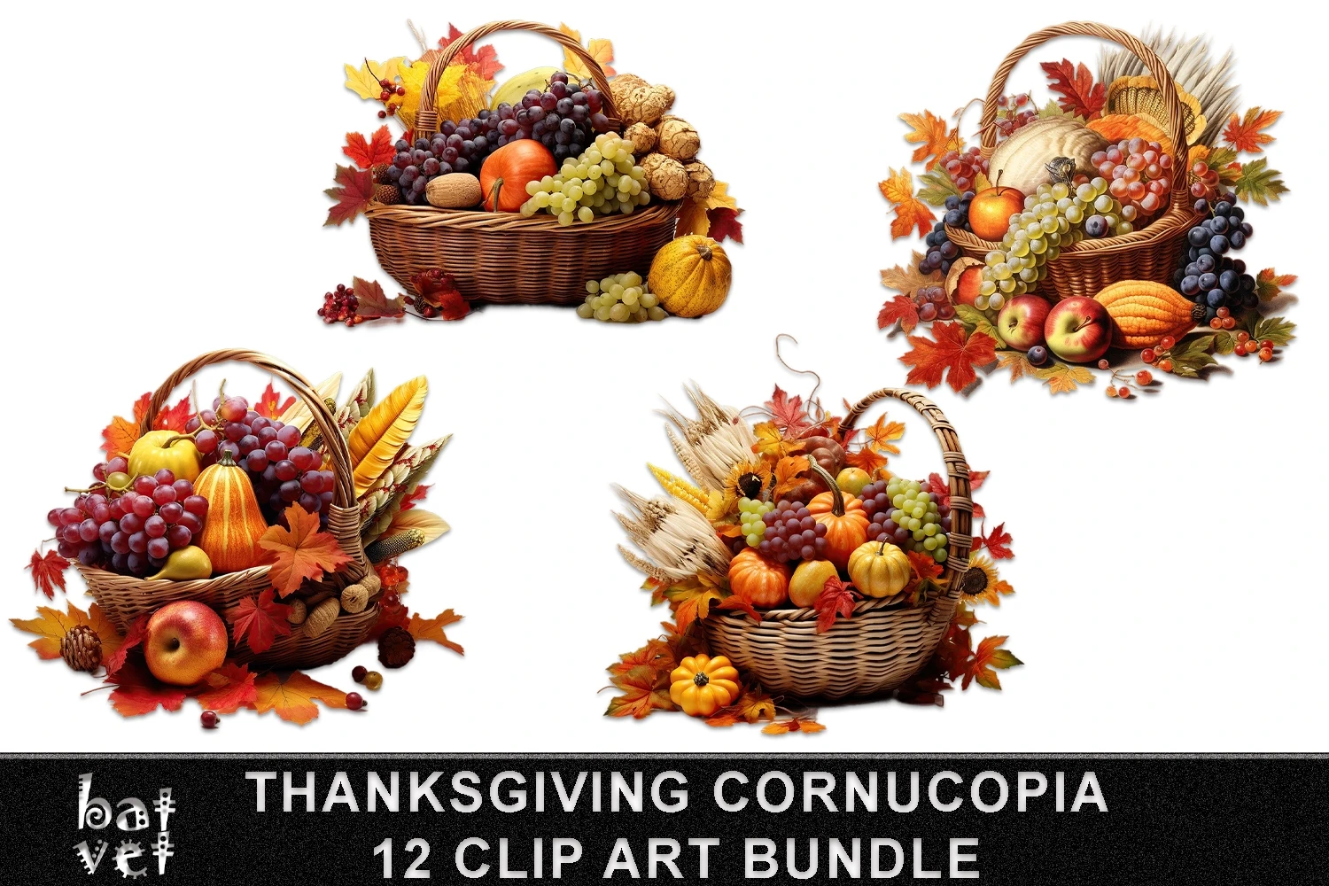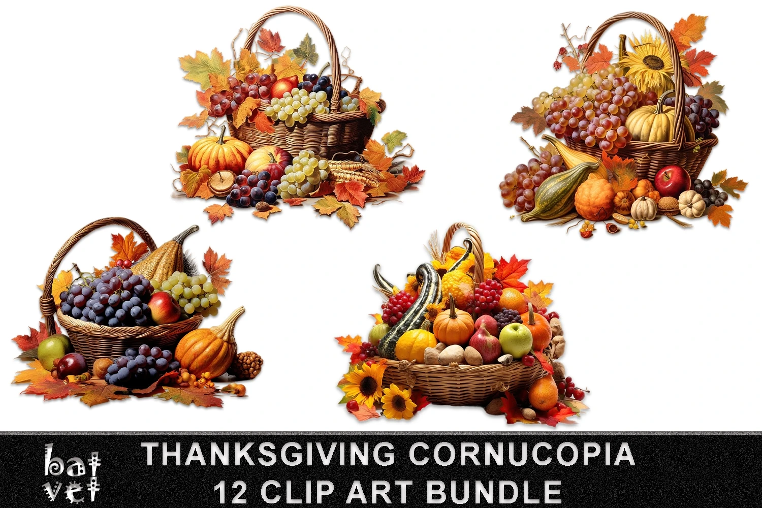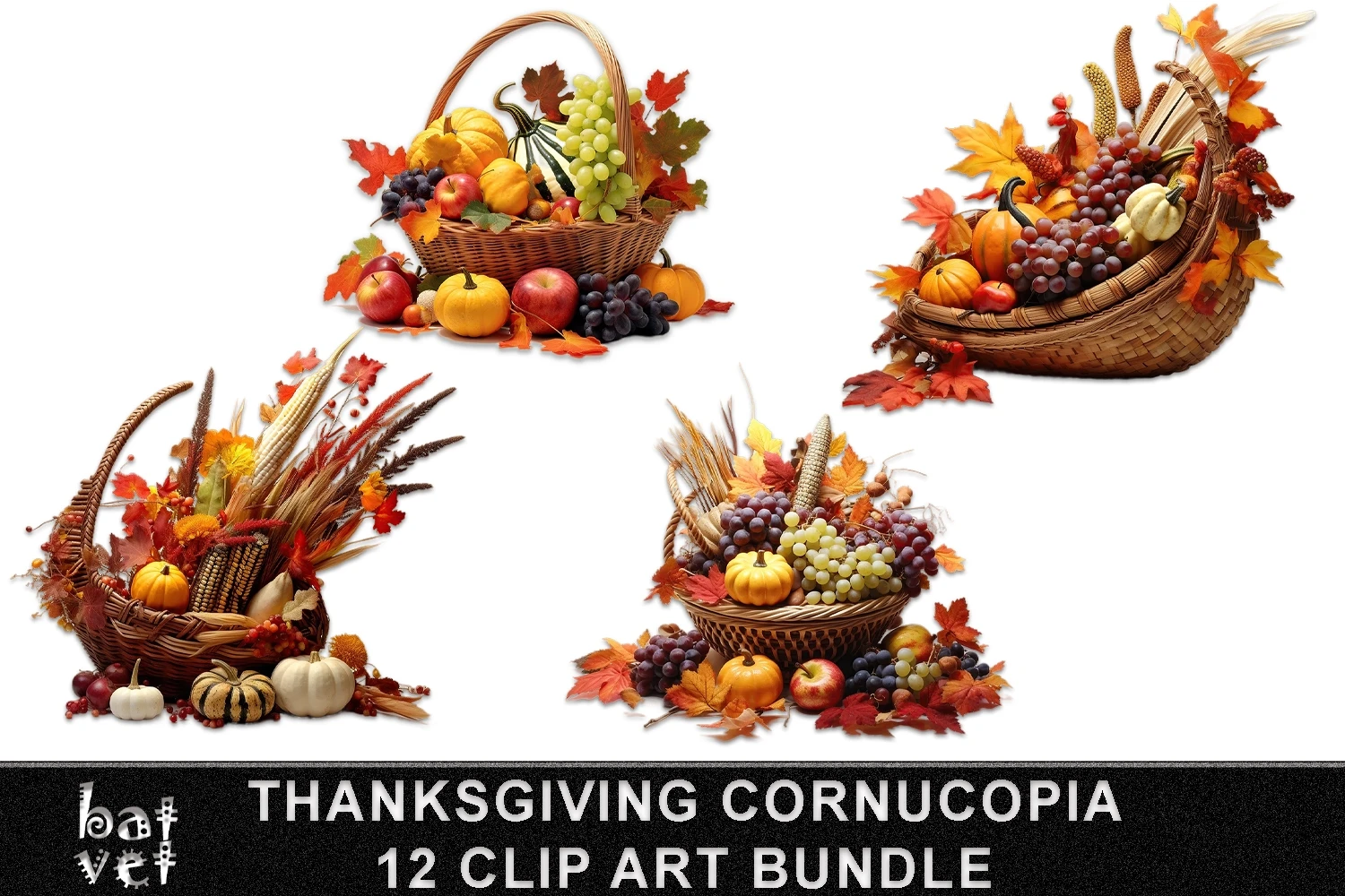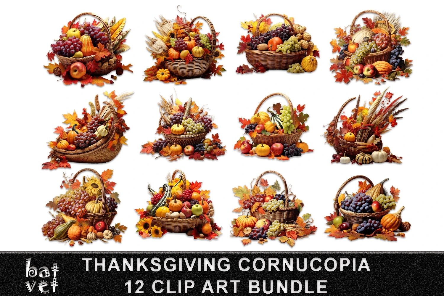 Thanksgiving Cornucopia Clip Art Bundle / Fall Cornucopia / 12 PNG Files