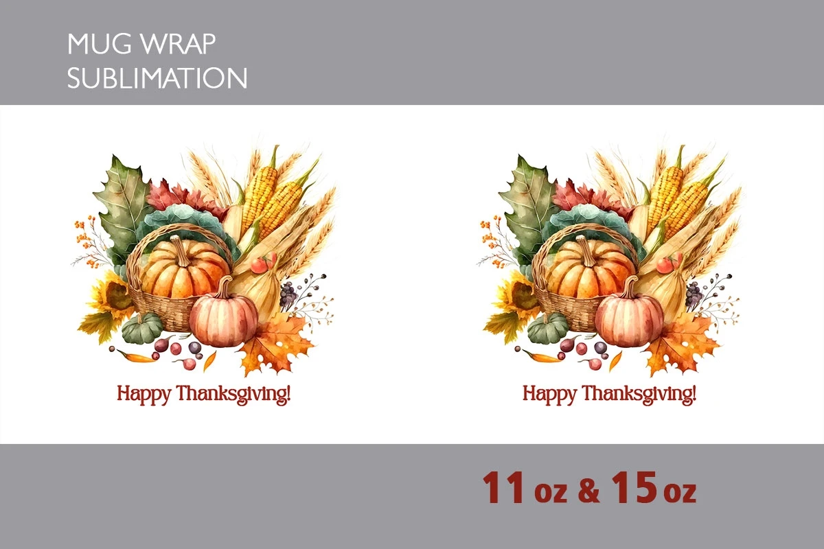 Cute watercolor Thanksgiving Day design for 11 oz and 15 oz.