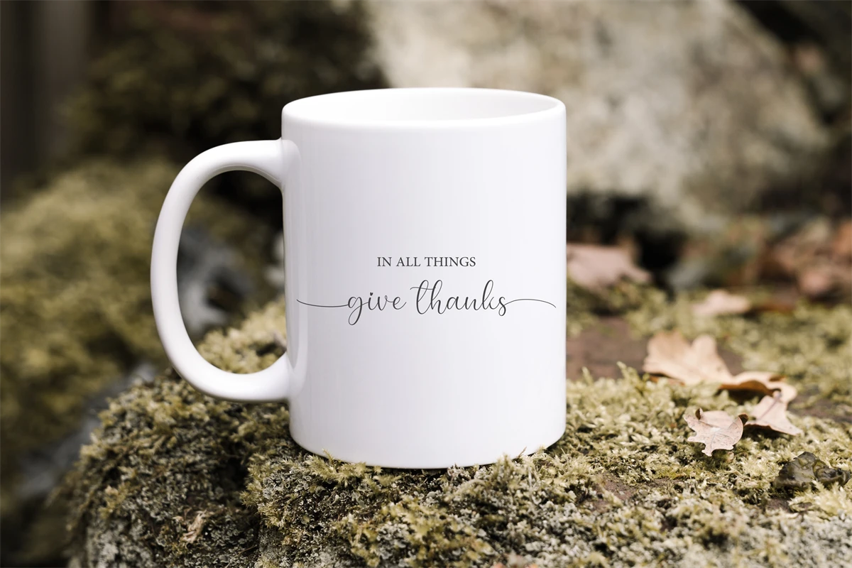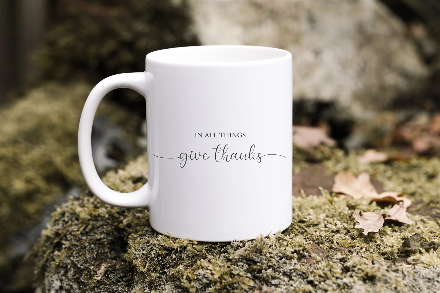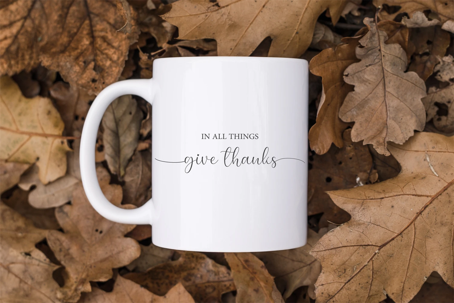 Thanksgiving SVG, Thanks Quote, In all things give thanks SVG PNG, Fall SVG, Autumn SVG, Mugs Design, Digital Download