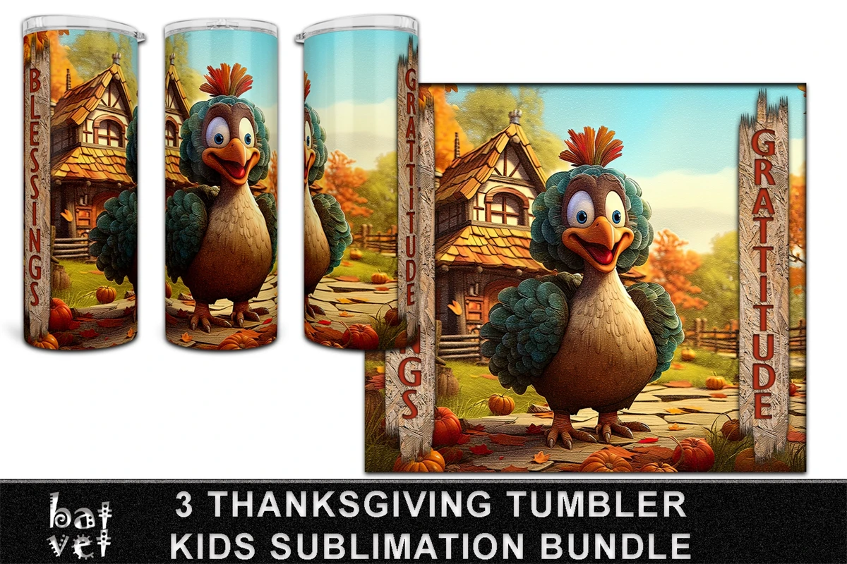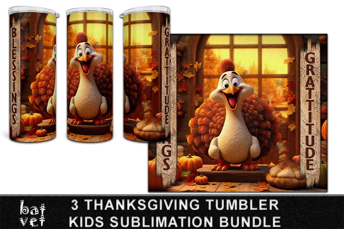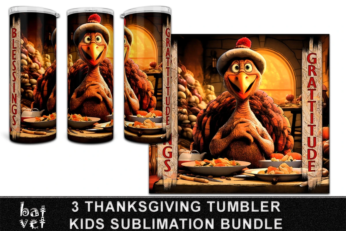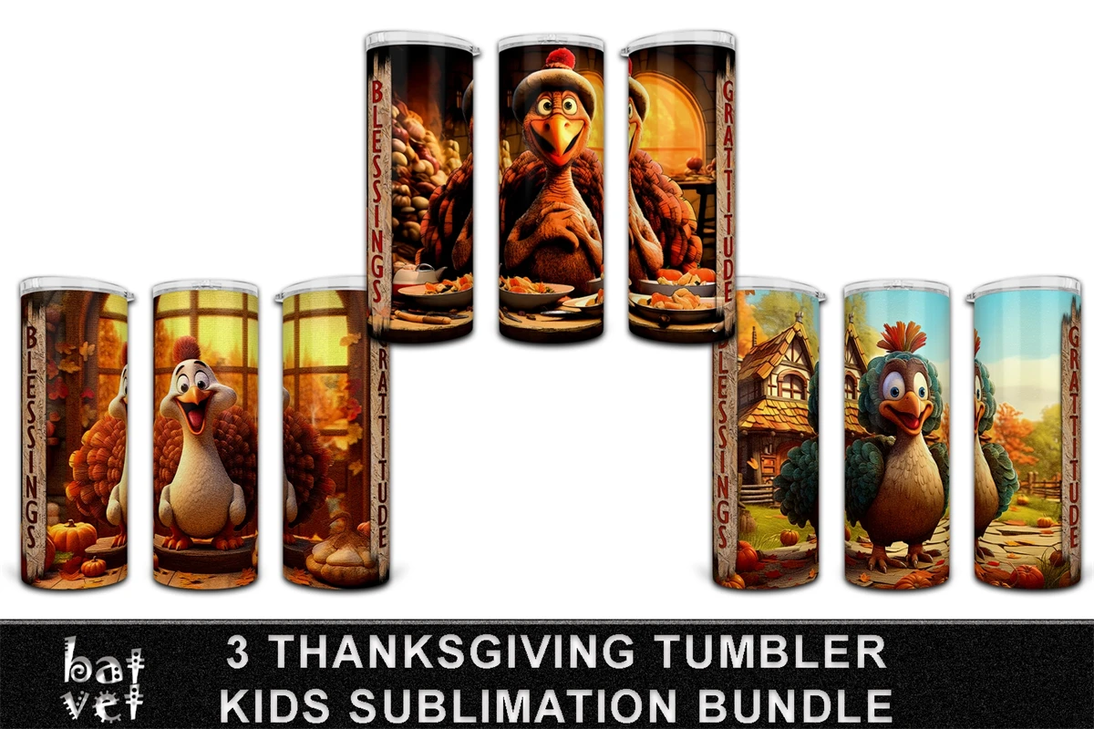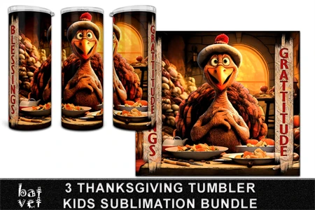 3 Thanksgiving Tumbler Sublimation PNG Bundle / Kids Design