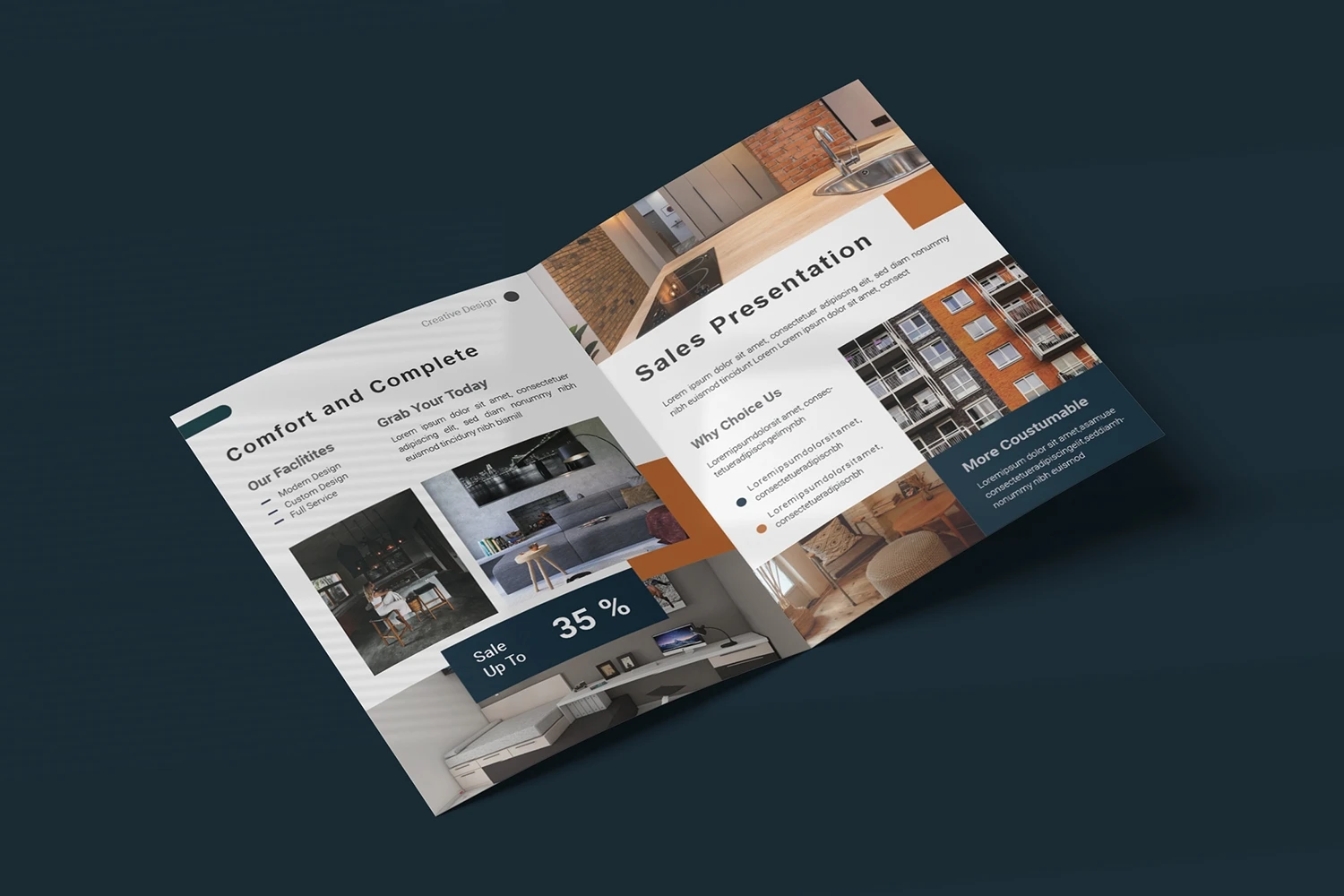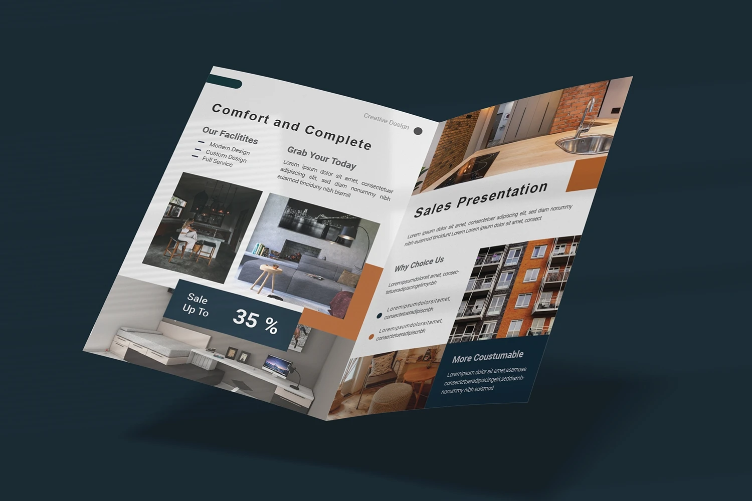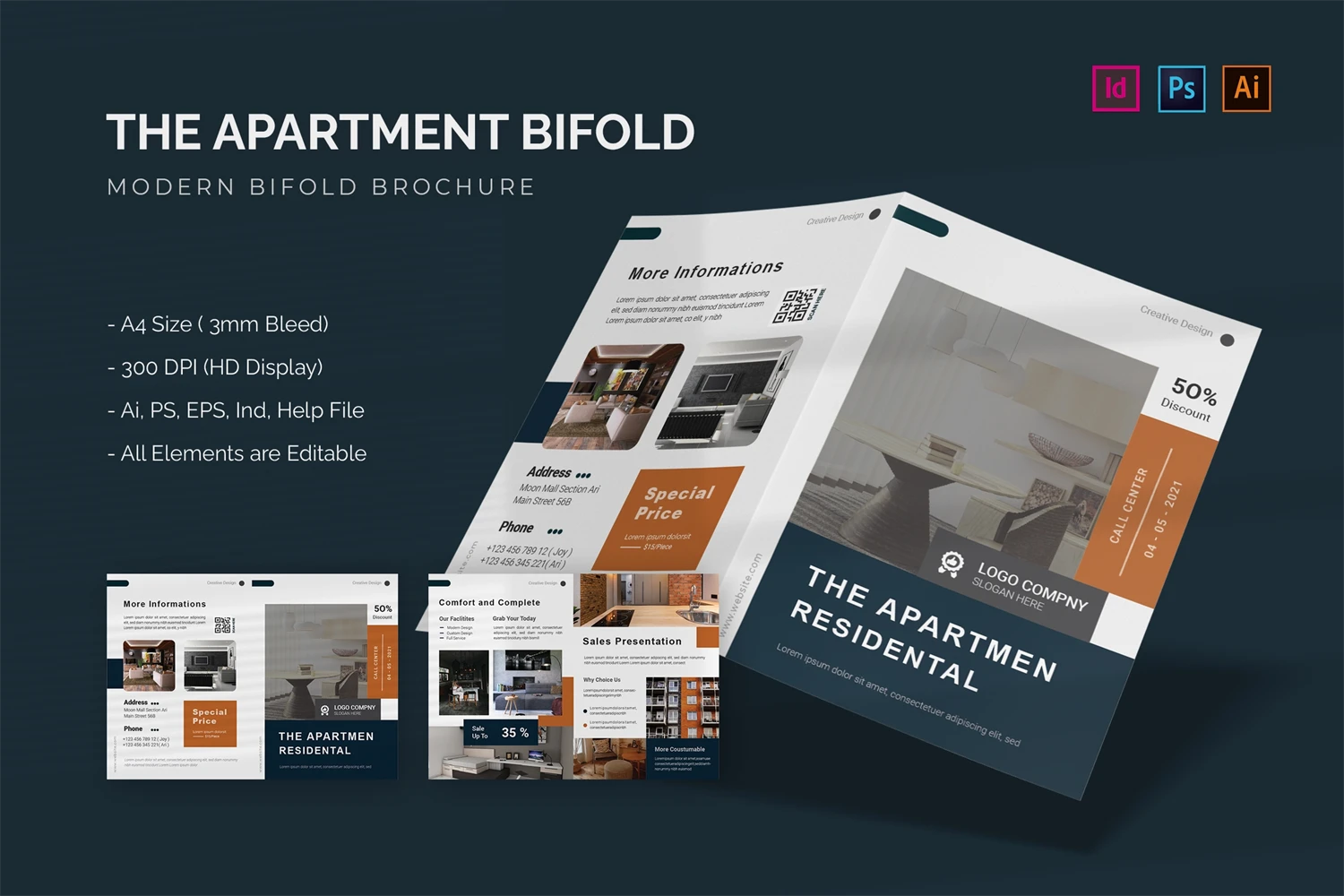 The Apartmen Resisental - Bifold Brochure We present this Bifold Brochure for you, simple and very elegant, and this Bifold Brochure is suitable for all types of your business, made with Adobe InDesign (INDD), Adobe Photoshop (PSD) and Adobe Illustrator (AI), very easy to customize, Hope you Like it, dont forget to rate, Thanks.
