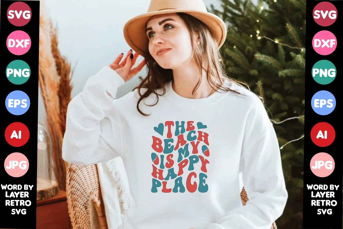 THE BEACH IS MY HAPPY PLACE Retro SVG Design,
