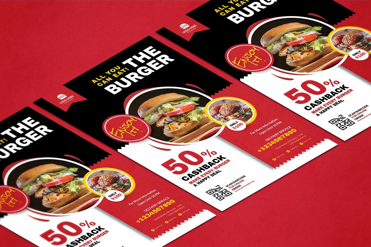 The Burger - Flyer. This Flyer template is designed for your company's business needs. very clean and elegant, and also easily edited and adjusted to your liking