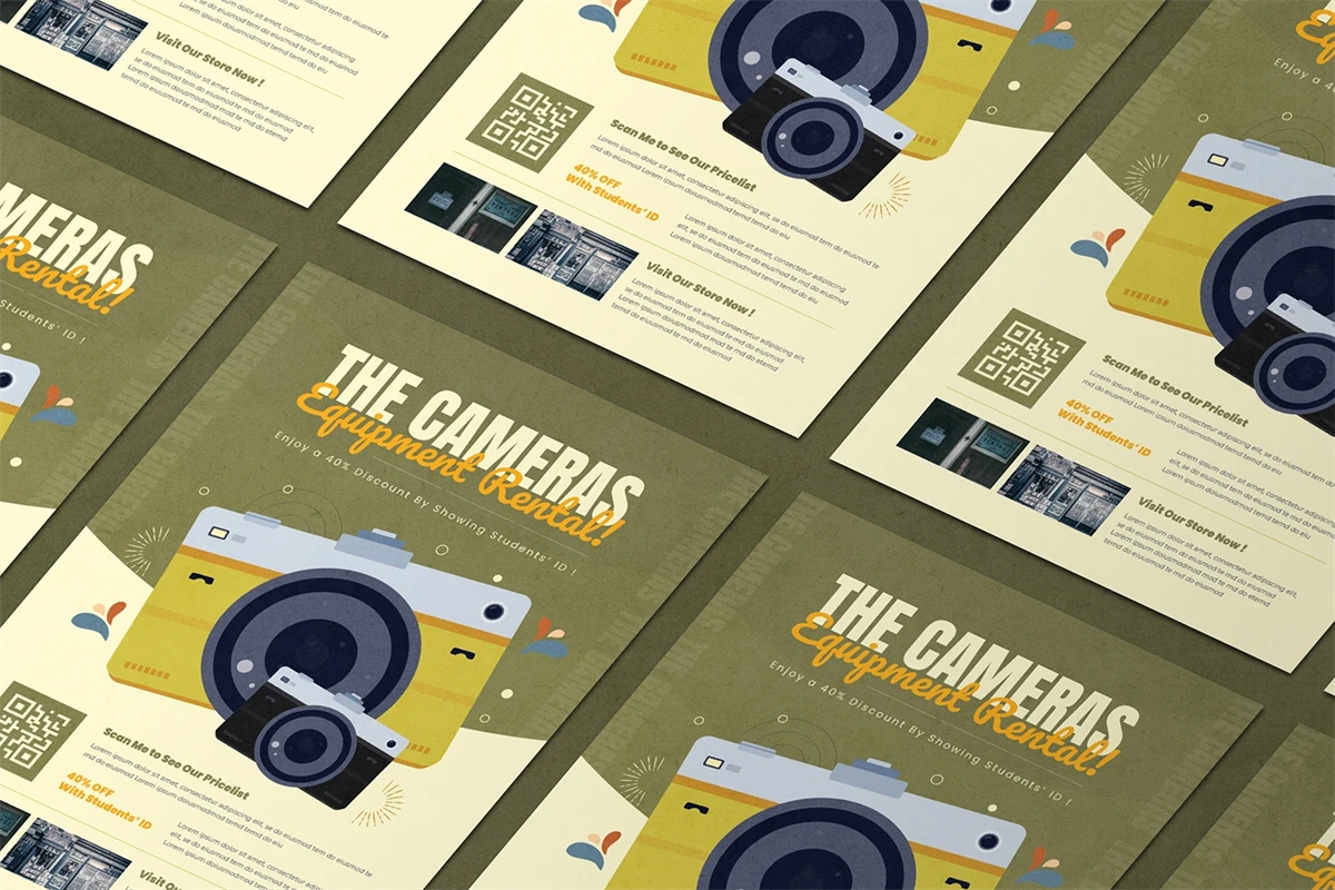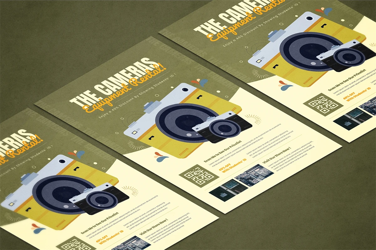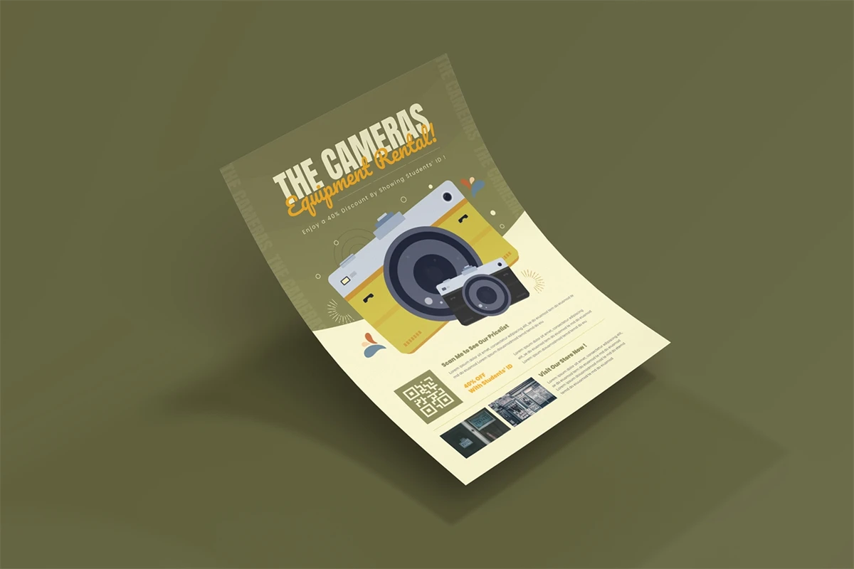 The Cameras - Flyer. This Flyer template is designed for your company's business needs. very clean and elegant, and also easily edited and adjusted to your liking