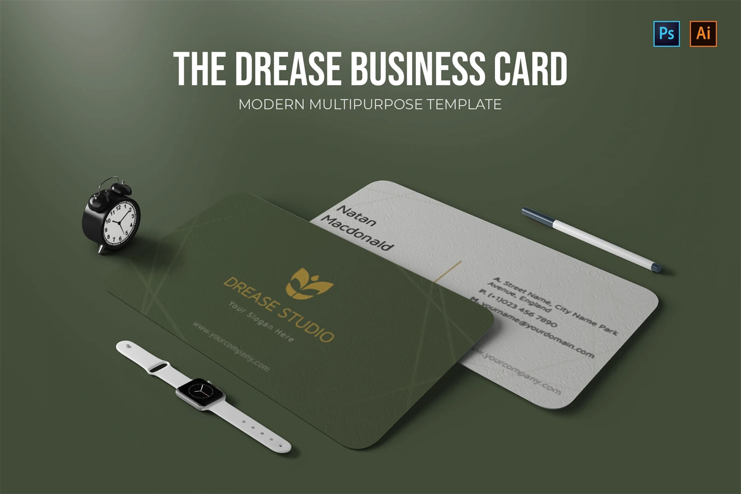 This The Drease - Business Card make your business cards look professional. You can use this business card for, identity, company business cards, Corporate Business, Creative, Blogs, Photographers, Artists, Designers, etc.