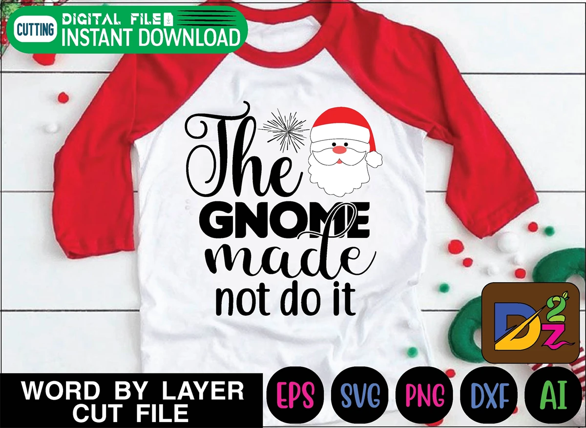 The gnome made not do it t shirt design This is an instant download cutting file compatible with many different cutting software/machines like cricut Silhouette