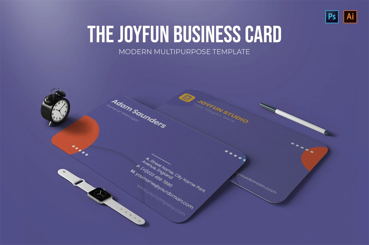 This The Joyfun - Business Card make your business cards look professional. You can use this business card for, identity, company business cards, Corporate Business, Creative, Blogs, Photographers, Artists, Designers, etc.