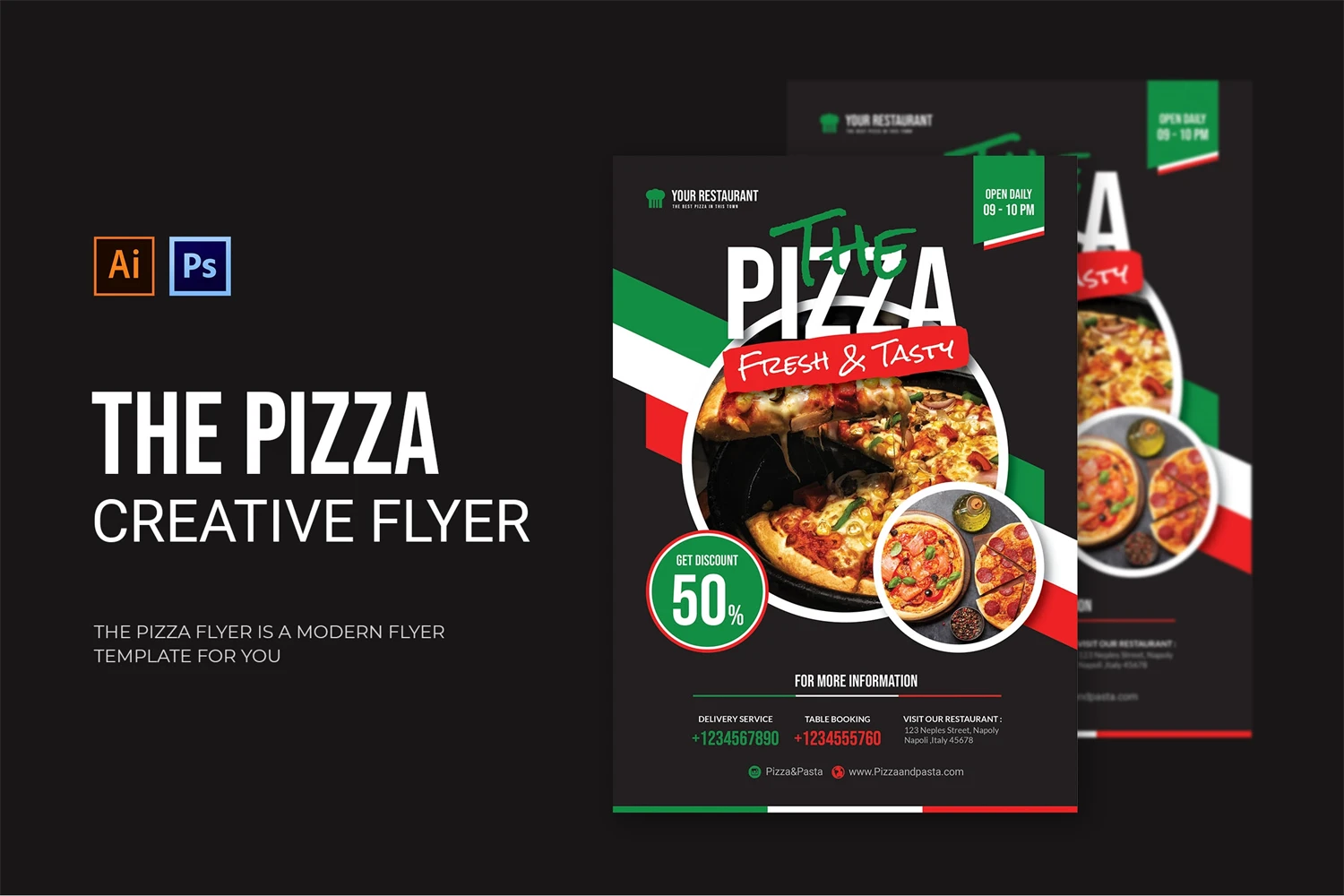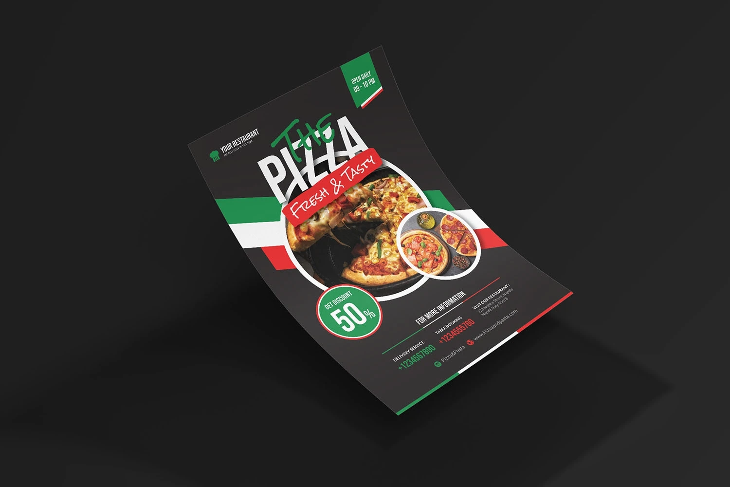 The Pizza - Flyer. This Flyer template is designed for your company's business needs. very clean and elegant, and also easily edited and adjusted to your liking