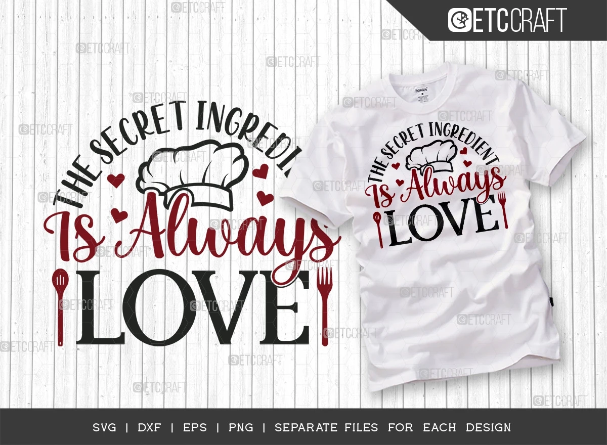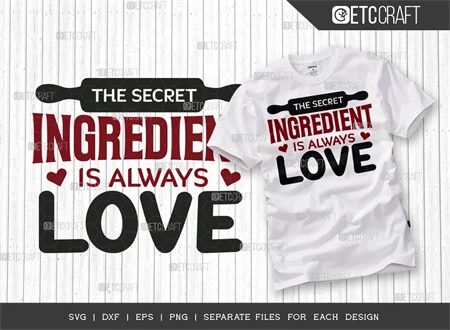 The Secret Ingredient Is Always Love" SVG is a collection of SVG files that has feature so many designs related of cooking and Ingredient.