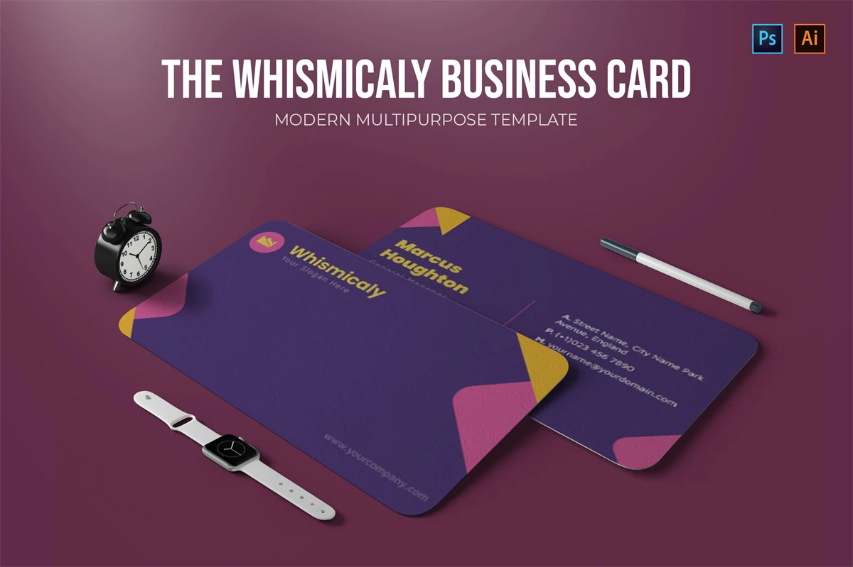 This The Whismicaly - Business Card make your business cards look professional. You can use this business card for, identity, company business cards, Corporate Business, Creative, Blogs, Photographers, Artists, Designers, etc.