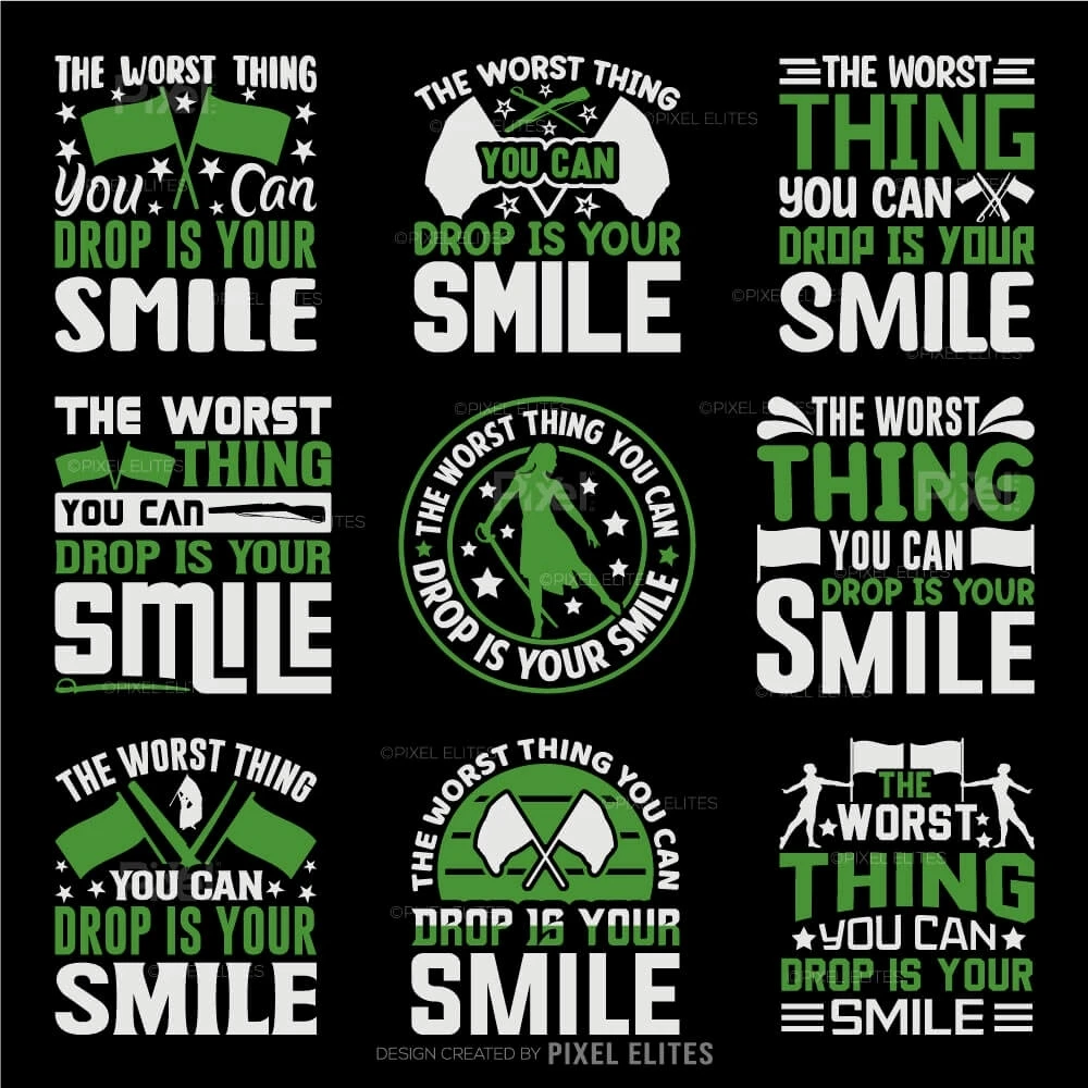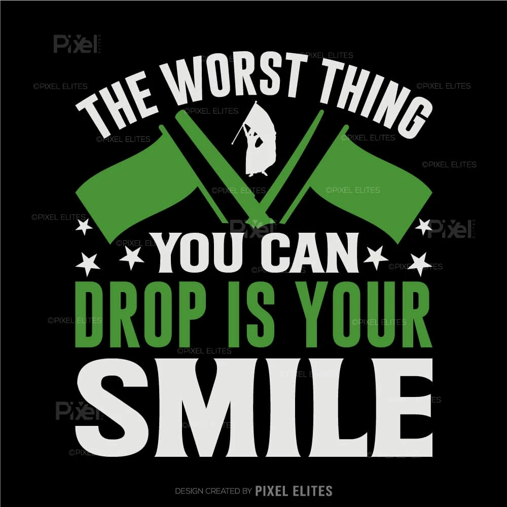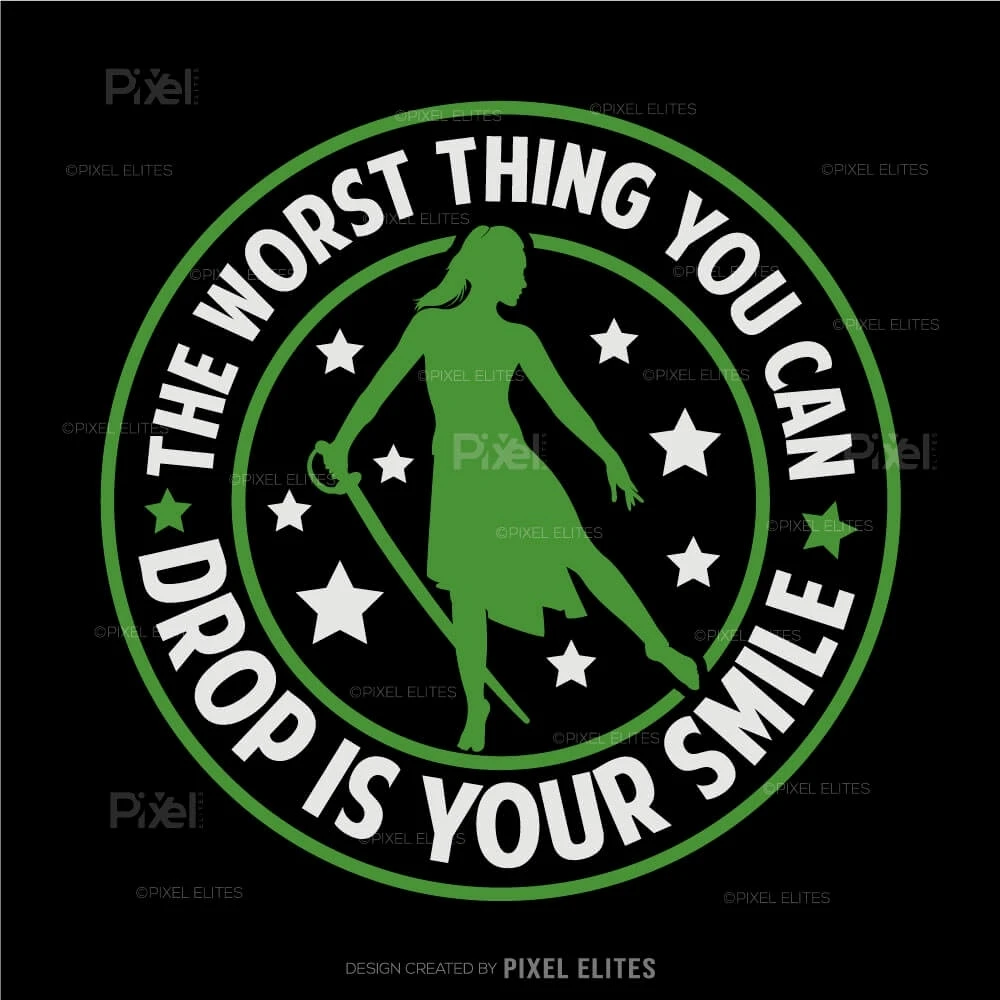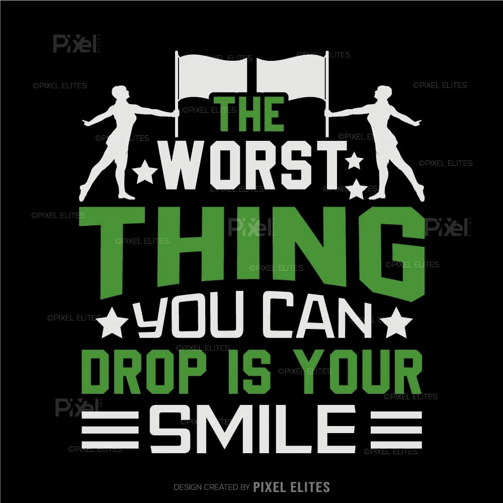 Bring positivity and team spirit to your color guard gear with The Worst Thing You Can Drop Is Your Smile SVGa cheerful and motivational design perfect for color guard members and fans. This uplifting quote design is ideal for creating custom t-shirts, mugs, and other DIY crafts that encourage confidence and joy both on and off the field.