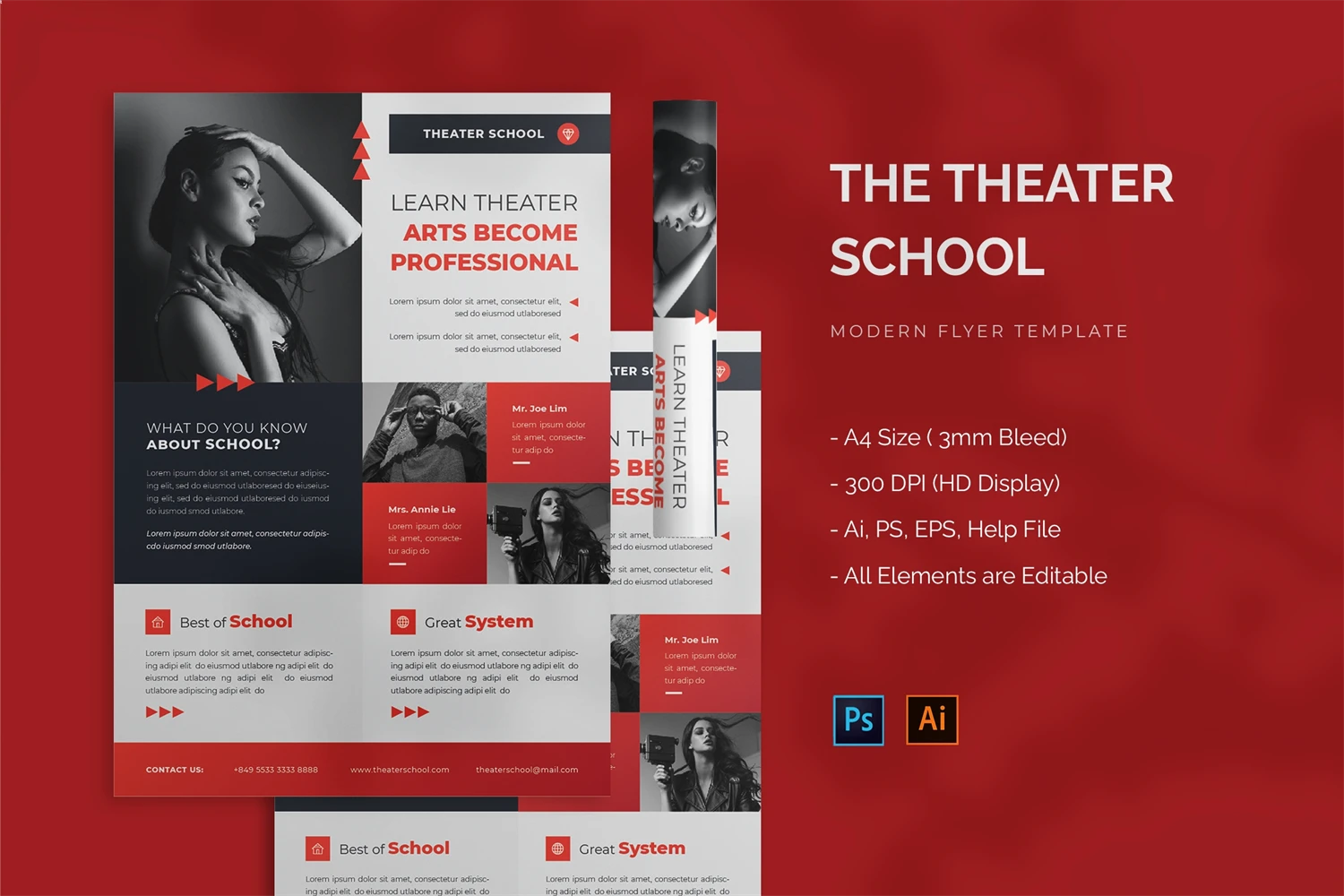 Theater School - Flyer. This Flyer template is designed for your company's business needs. very clean and elegant, and also easily edited and adjusted to your liking