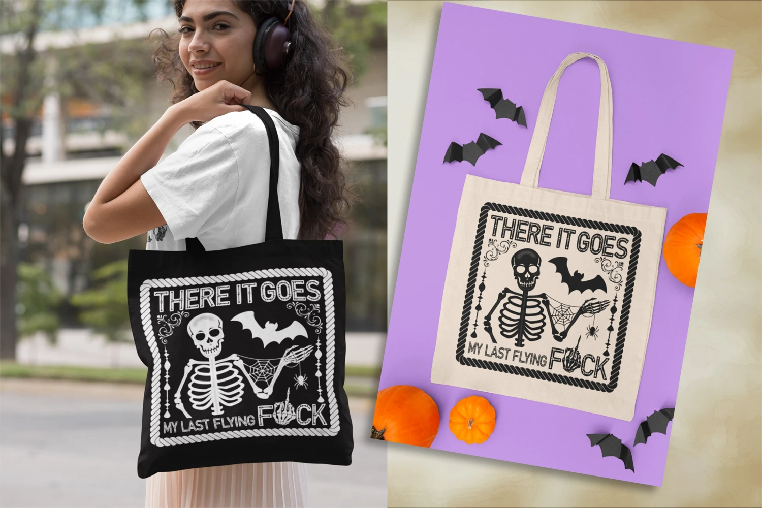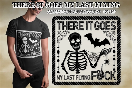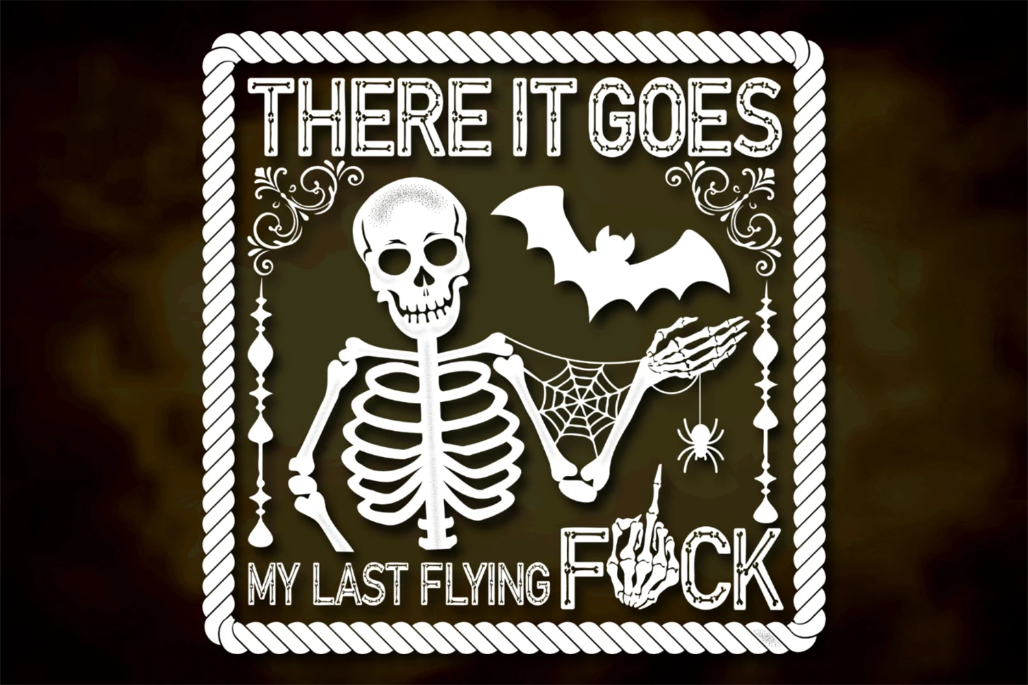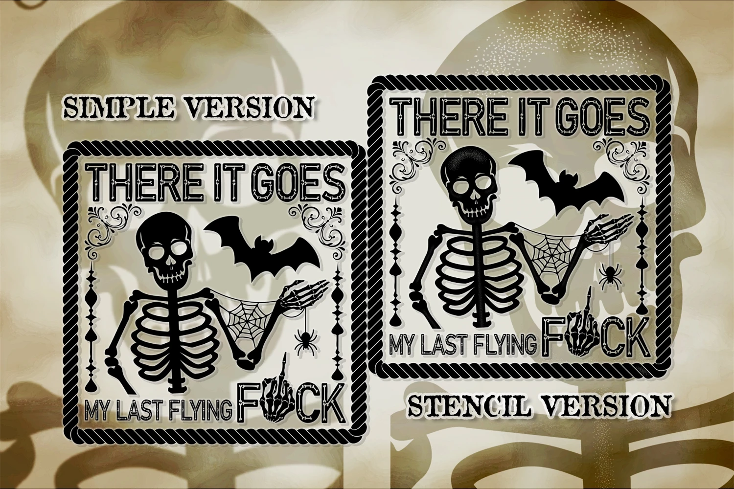 Halloween Skull There It Goes My Last Flying Fck Clipart T-shirt Design for Creative DIY Projects Vinyl Cut Files, and POD projects. There are 2 versions of the design, a simple silhouette version, and a grunge stencil version.