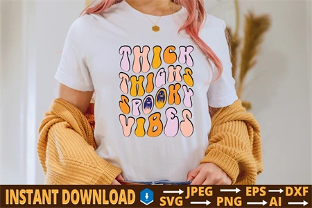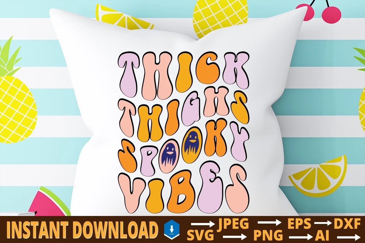 Thick Thighs Spooky Vibes Retro HalloweenSVG Cut File Design