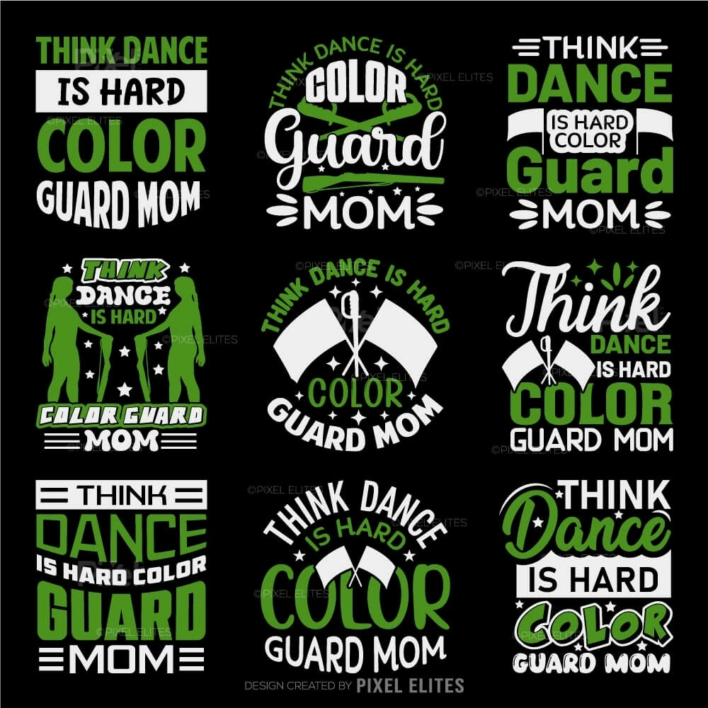 Celebrate the strength and dedication of color guard moms with the Think Dance Is Hard, Colour Guard Mom SVG T-Shirt Design. This witty and heartfelt design is perfect for creating custom t-shirts that proudly showcase the unique challenges and pride of being a supportive color guard mom.