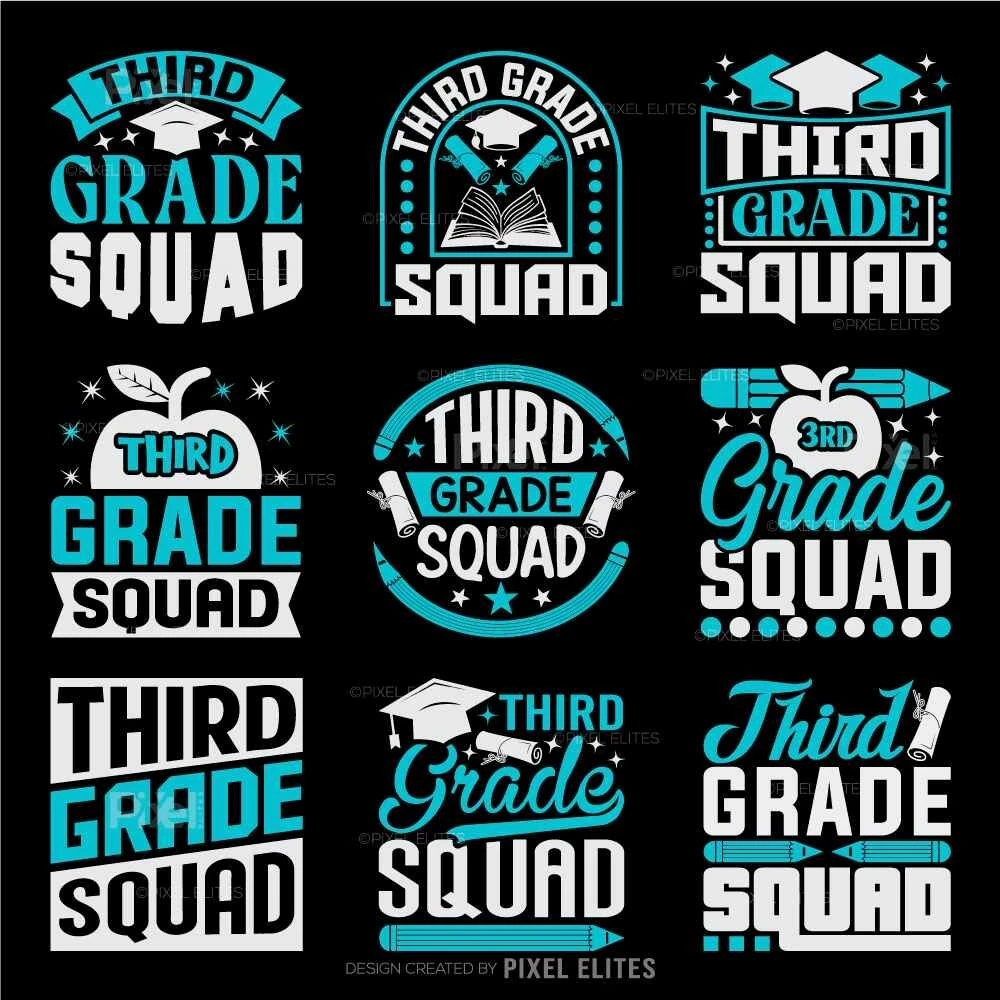 Third Grade Squad SVG Cut Files Graduation Design Bundle Senior Class PNG, DXF & EPS for Cricut & Vinyl Decals