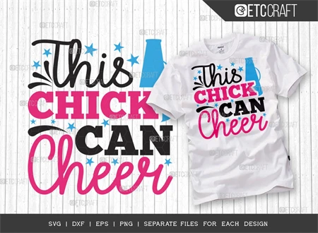 Stand out from the crowd with this exclusive "This Chick Can Cheer" SVG design. It's a one-of-a-kind artwork that you won't find anywhere else.
