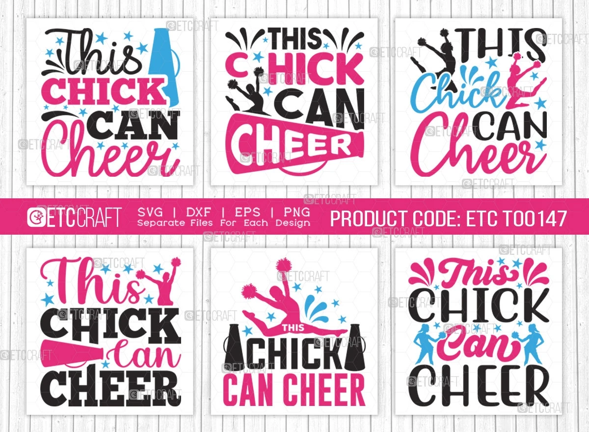 Express your cheerleading spirit with the "This Chick Can Cheer SVG Bundle" and let everyone know that you love cheer! Get yours today and spread cheer wherever you go.