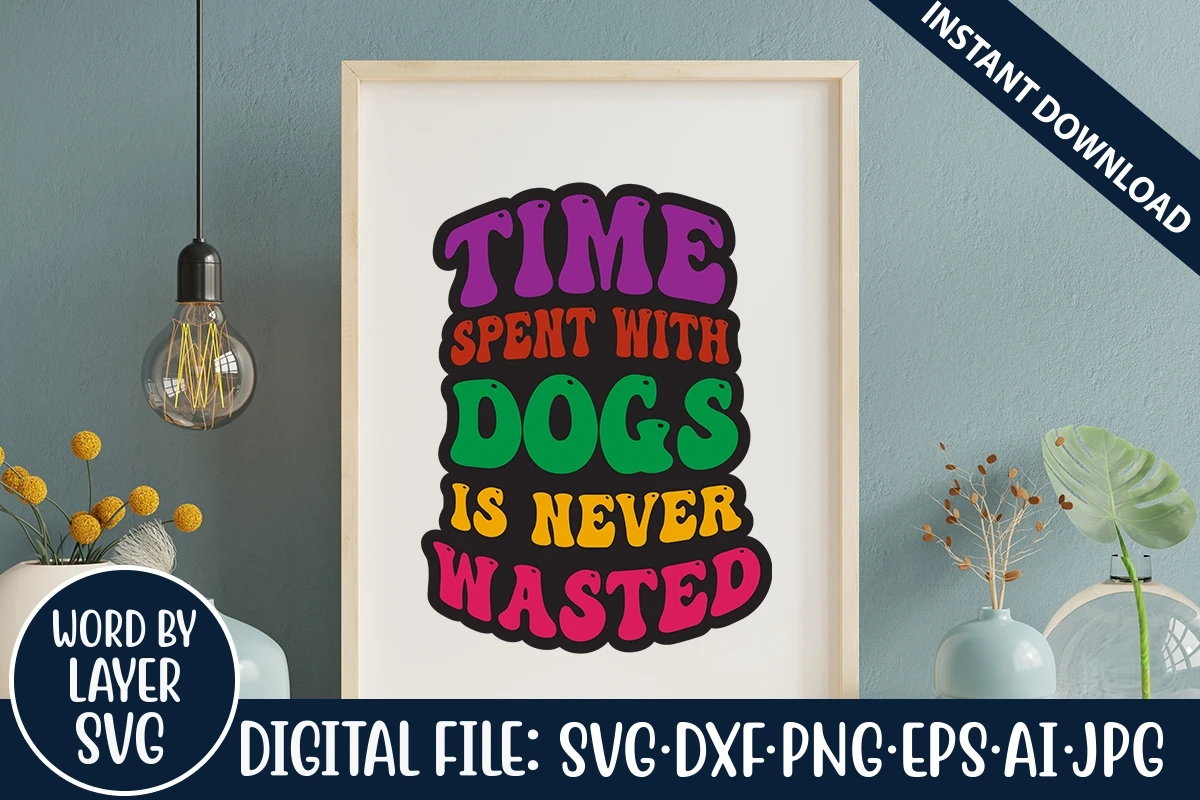 Time Spent With Dogs Is Never Wasted Retro SVG Design