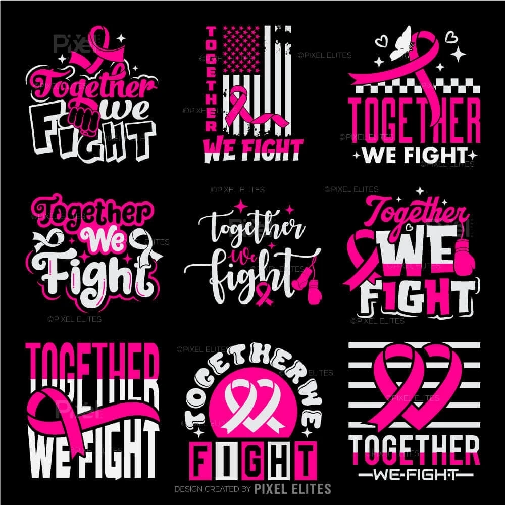 Together We Fight SVG Cut Files T-Shirt Design for Breast Cancer Awareness