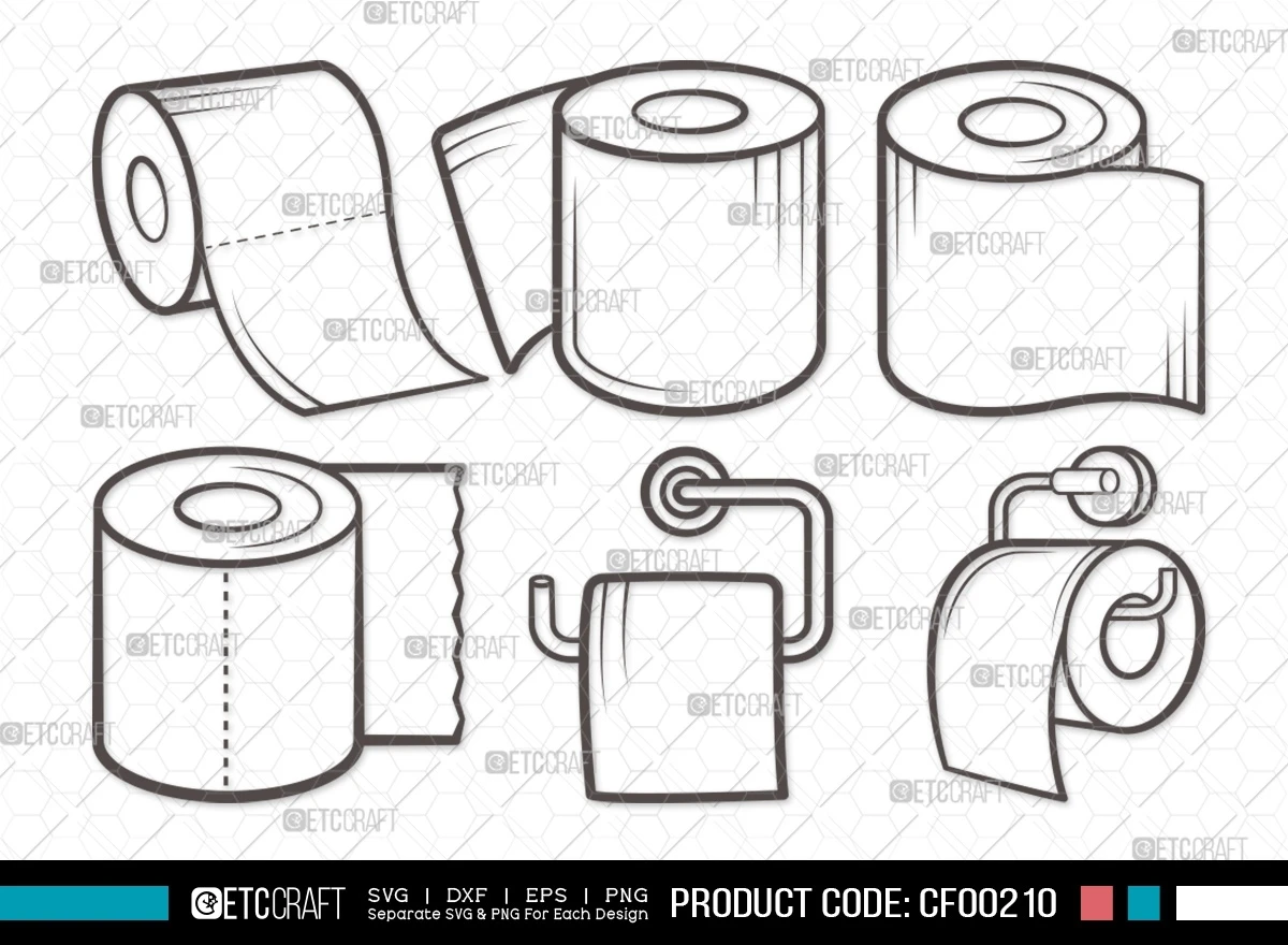 Don't miss the opportunity to add a unique, versatile, and fun collection of toilet paper-themed designs to your creative repertoire. Acquire our Toilet Paper Outline Hanging Tissue Paper Roll SVG Cut File Bundle now and take your projects to the next level with a touch of humor!