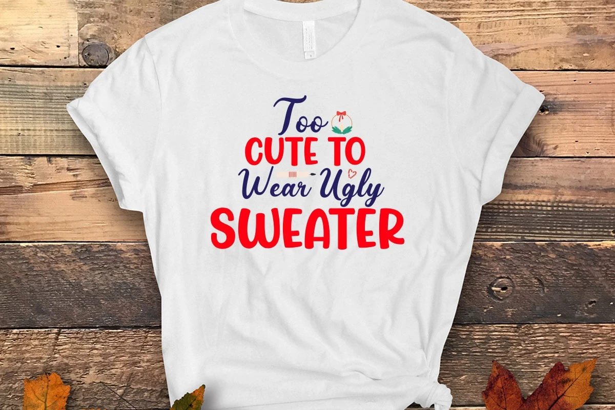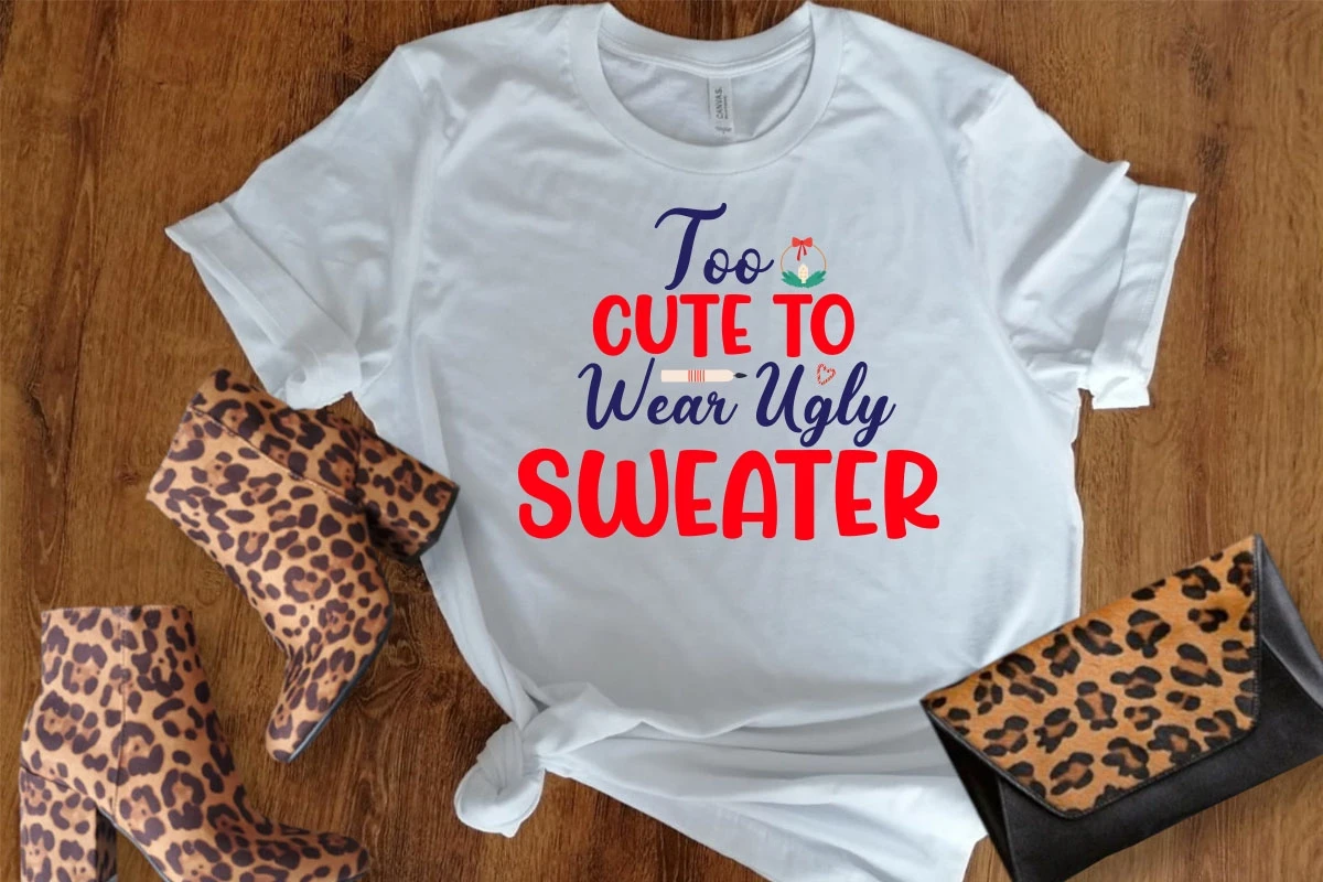 Too Cute To Wear Ugly Sweater Svg Design