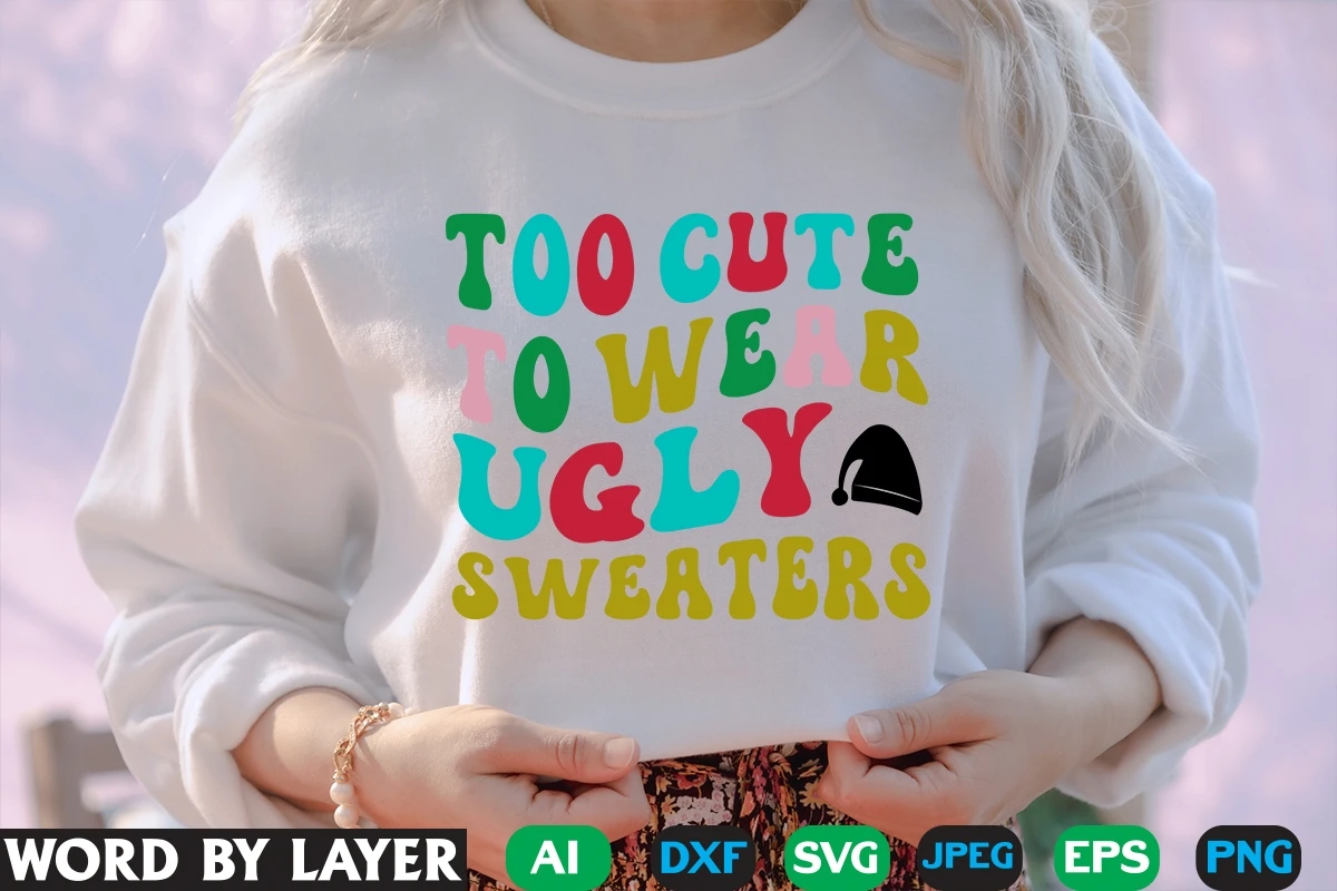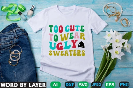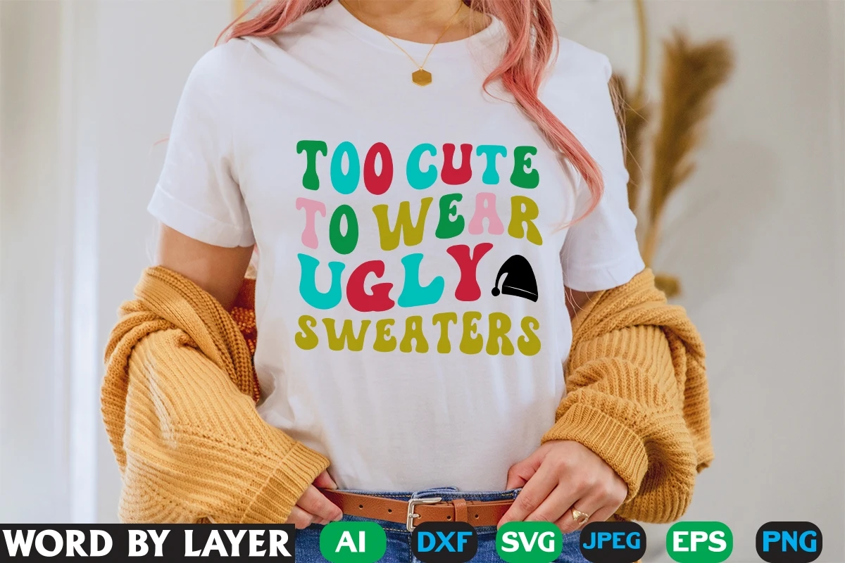 Too Cute To Wear Ugly Sweaters Retro SVG Design