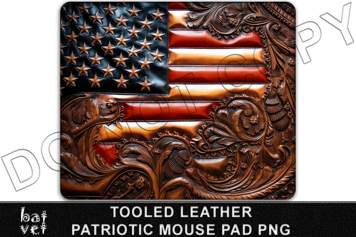 Tooled Leather Patriotic Mouse Pad Sublimation Design PNG